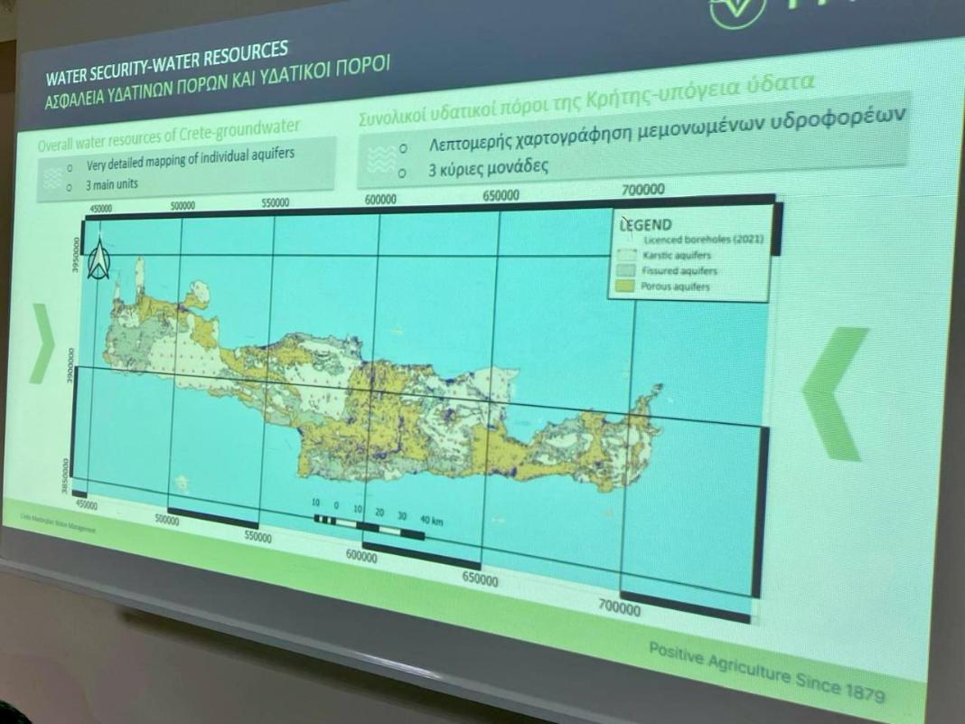 Πρόκειται για ένα σχέδιο που δεν θα δώσει μαγικές λύσεις, αλλά μέσα από συζητήσεις, όπως η σημερινή, θα στηρίζεται σε ρεαλιστικές προτάσεις, πραγματικά δεδομένα, τεκμηριωμένες θέσεις και τις πραγματικές δυνατότητες της Κρήτης. Ένα από τα βασικά ζητήματα που αντιμετωπίζουμε είναι η ορθή αξιοποίηση των υδάτινων πόρων. Παρά τη σημαντική ποσότητα νερού που πέφτει κάθε χρόνο στο νησί, η πλειονότητά του καταλήγει στη θάλασσα, καθώς απουσιάζουν οι κατάλληλοι μηχανισμοί αποθήκευσης και διαχείρισης, ώστε να αξιοποιηθεί αποτελεσματικά για τις αρδευτικές ανάγκες της Κρήτης.