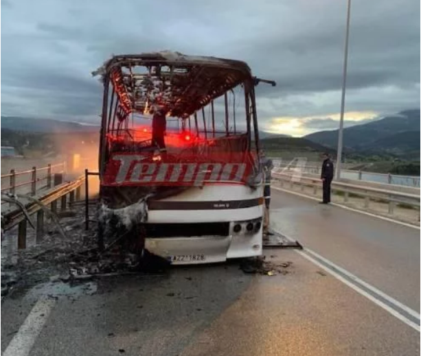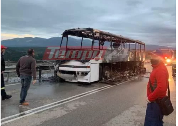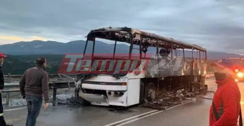Σχολικό λεωφορείο στην Αχαΐα «λαμπάδιασε» σήμερα νωρίς το πρωί και ευτυχώς δεν είχε μέσα τους μαθητές.