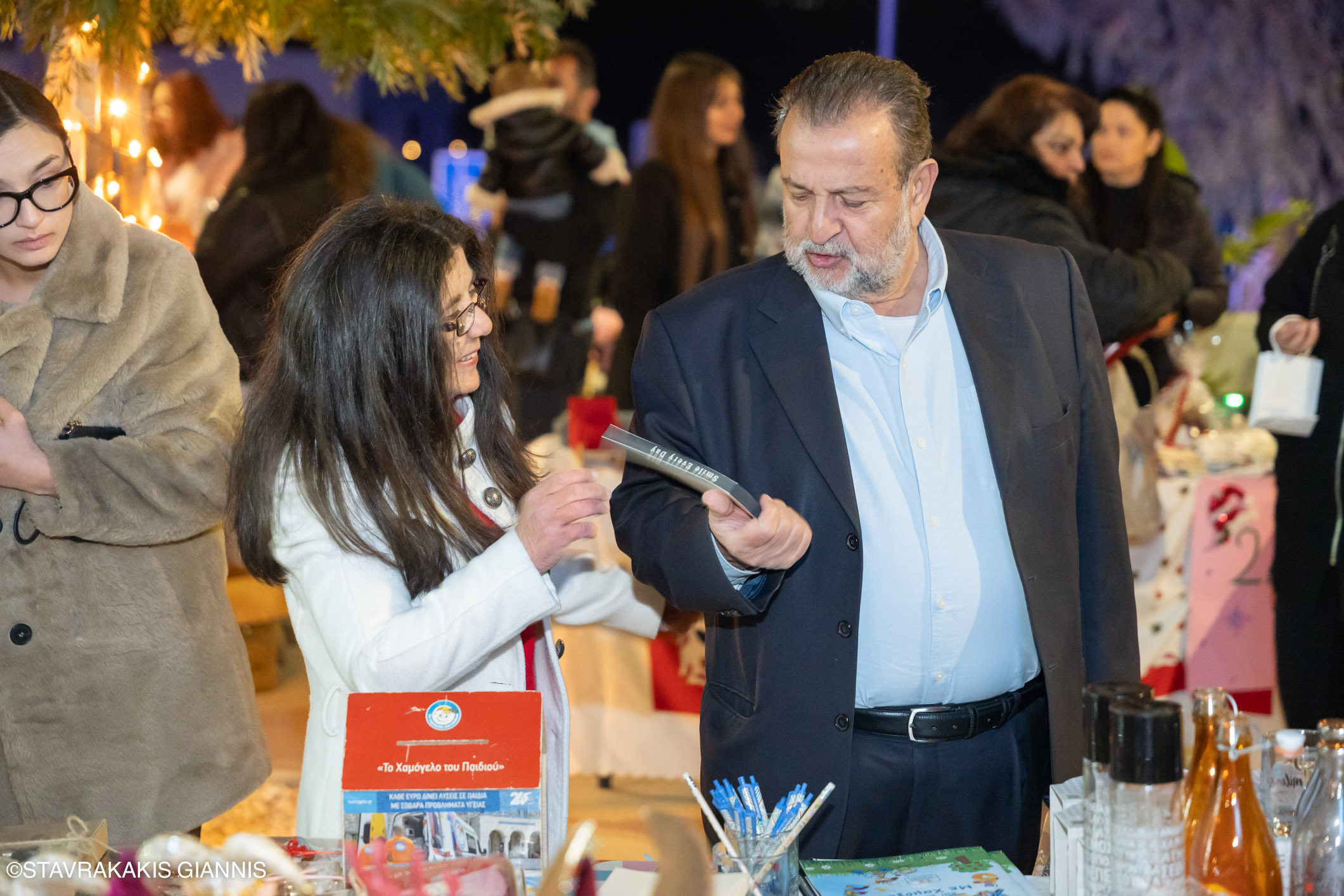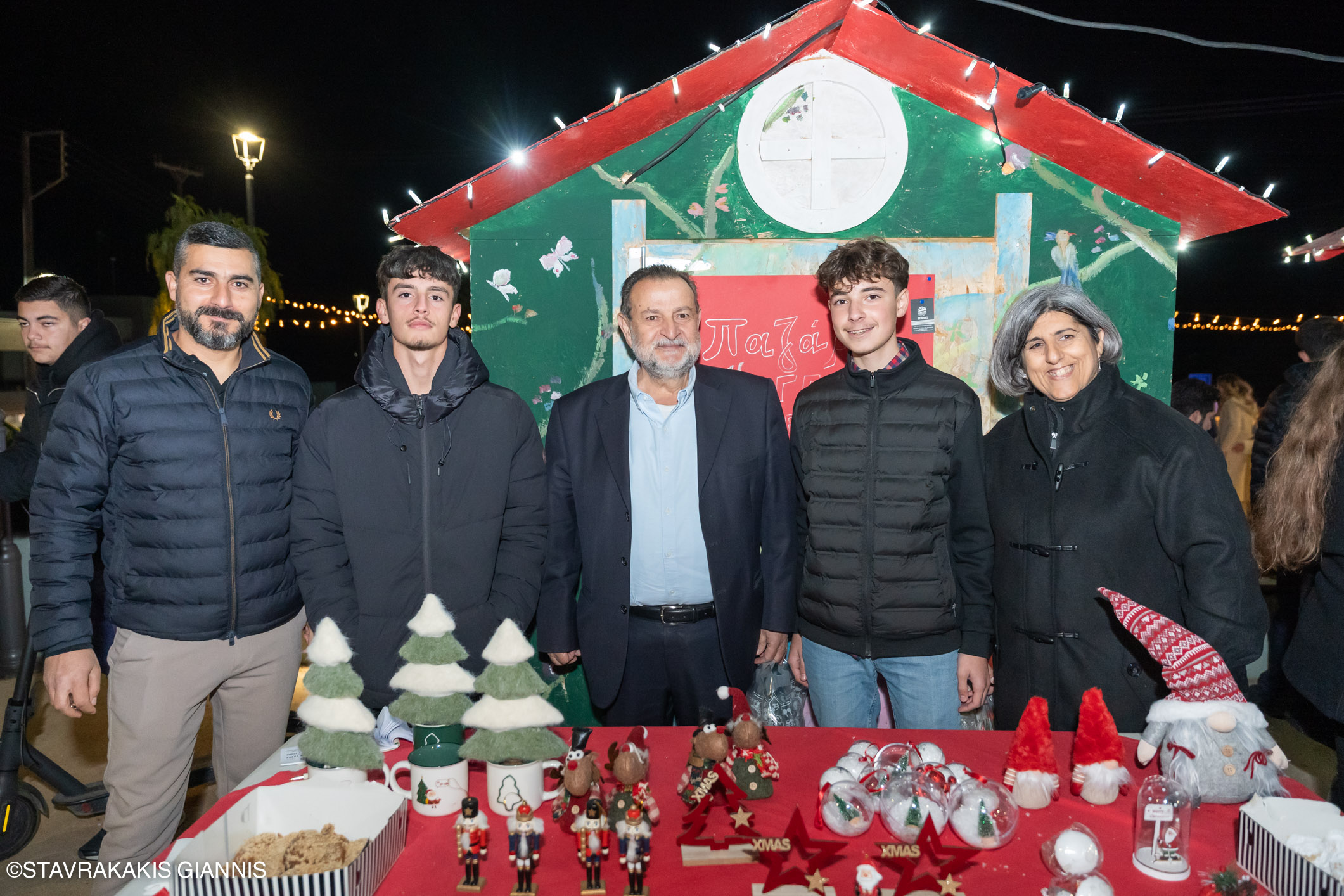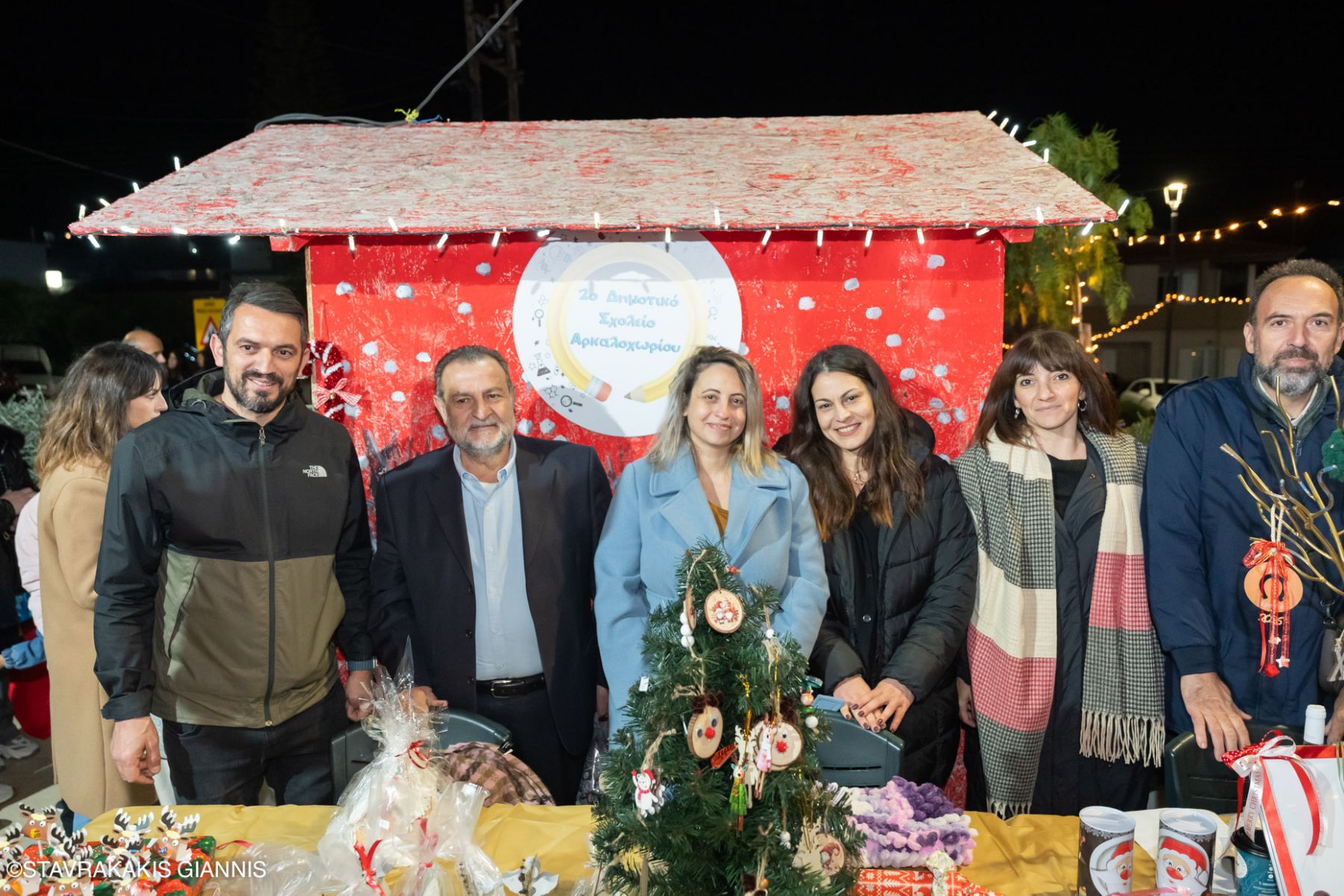 Η Πλατεία του Δημοτικού Καταστήματος Αρκαλοχωρίου, από νωρίς το απόγευμα, είχε μετατραπεί σε ένα γιορτινό χωριό, γεμάτο δράσεις και χαρούμενες φωνές μικρών και μεγάλων. Στο χριστουγεννιάτικο παζάρι και στα δρώμενα, που διοργάνωσαν οι Σύλλογοι Γονέων και Κηδεμόνων των Σχολείων Αρκαλοχωρίου, οι Παιδικοί Σταθμοί και τα Νηπιαγωγεία, οι εκπαιδευτικοί του 2ου Δημοτικού Σχολείου για κοινωνικό σκοπό, οι μαθητές της Γ’ Λυκείου, της Α’ Λυκείου, της Γ’ Γυμνασίου Αρκαλοχωρίου και της ΣΤ’ Τάξης του 1ου Δημοτικού Σχολείου, το «Χαμόγελο του Παιδιού», το Σχολείο Δεύτερης Ευκαιρίας, υπήρχαν υπέροχες χριστουγεννιάτικες δημιουργίες, χειροποίητα δώρα και εδέσματα για τον κόσμο.