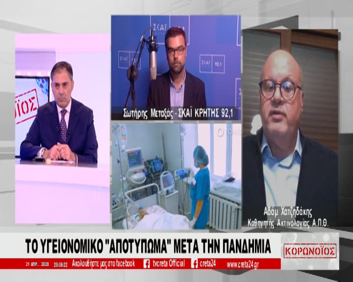 «Φοβάμαι μήπως μετά την ύφεση στα κρούσματα του κορωνοϊού, αρχίσει να αυξάνεται η θνητότητα σε άλλες παθήσεις, που ξεχάσαμε ν’ αντιμετωπίσουμε», δήλωσε στον περιφερειακό τηλεοπτικό σταθμό CRETA, ο Καθηγητής Ακτινολογίας του Α.Π.Θ., Αδάμ Χατζηδάκης, ο οποίος κατάγεται από την Κρήτη και στο παρελθόν εργαζόταν στο Πανεπιστημιακό Νοσοκομείο Ηρακλείου.