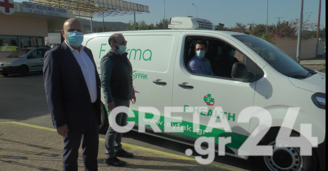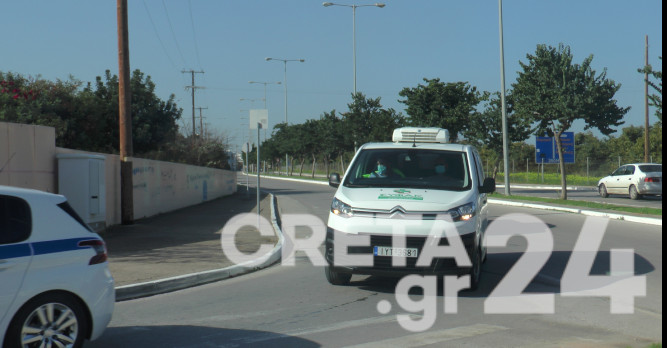 Τα εμβόλια έφτασαν στο νοσοκομείο Χανίων στις 12 το μεσημέρι, συνοδεία περιπολικών.