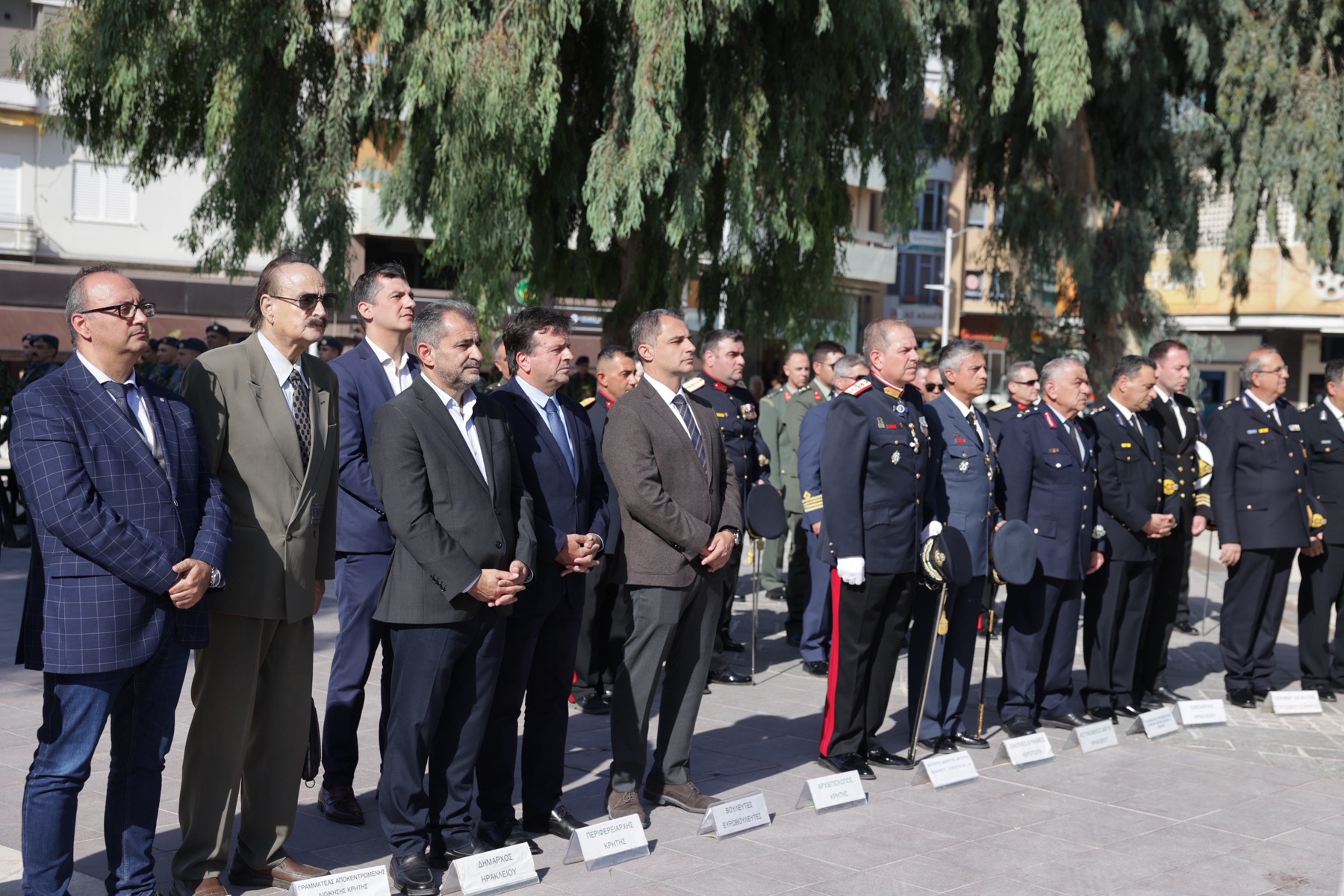 Στεφάνια κατέθεσαν ο βουλευτής της Ν.Δ. Ηρακλείου Μάξιμος Σενετάκης, ο Αντιπεριφερειάρχης Ηρακλείου Νίκος Συριγωνάκης, ο εκπρόσωπος του Δημάρχου Ηρακλείου, Αντιδήμαρχος Μανόλης Χαιρέτης, ο Ανώτερος Διοικητής Φρουράς Ηρακλείου ως εκπρόσωπος των Ενόπλων Δυνάμεων και των Σωμάτων Ασφαλείας, εκπρόσωποι εκπαίδευσης, κομμάτων, αποστράτων, φορέων.