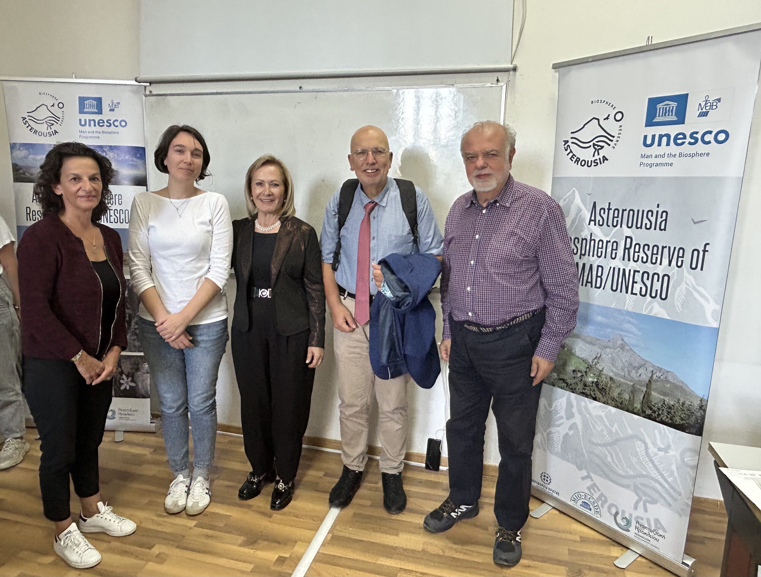 ⦁ η Πρόεδρος της Τοπικής Επιτροπής Διαχείρισης του Αποθέματος Βιόσφαιρας Αστερουσίων κα Θεανώ Βρέντζου, τονίζοντας τη σημασία της συνεργασίας για ένα βιώσιμο μέλλον για τις επόμενες γενιές αλλά και τα οφέλη που αποκομίζουν οι τοπικές κοινωνίες από τη συμμετοχή στα Αποθέματα Βιόσφαιρας,
