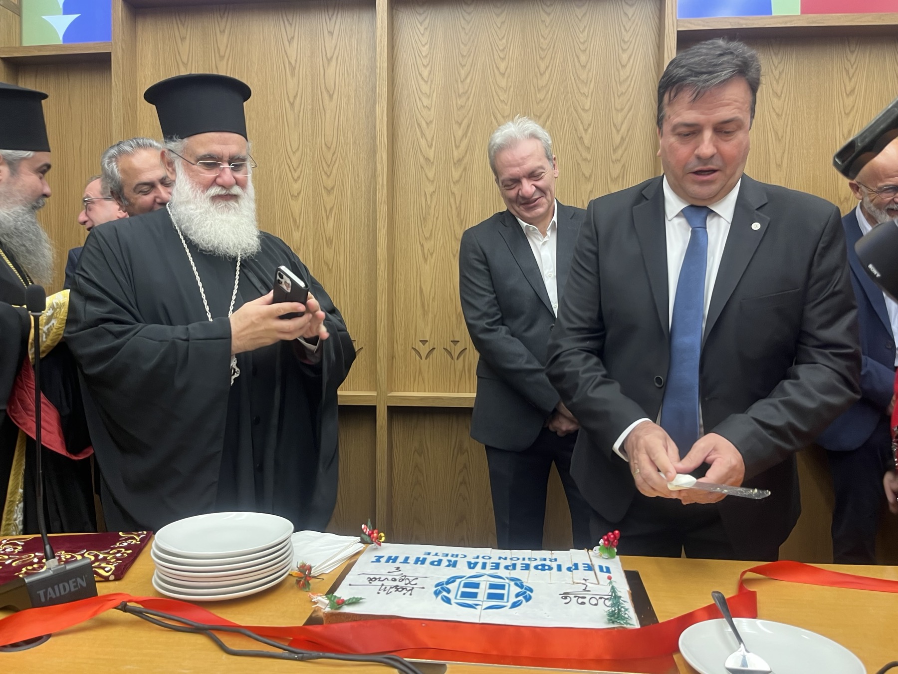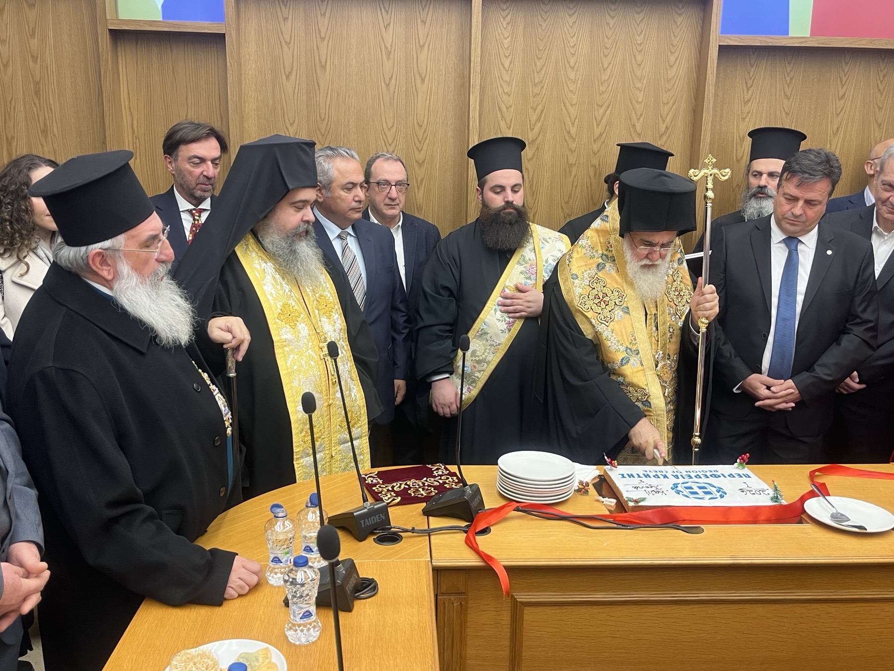 Η κοπή βασιλόπιτας πραγματοποιήθηκε στην αίθουσα συνεδριάσεων, παρουσία του αντιπεριφερειάρχη Ηρακλείου Νίκου Συριγωνάκη.