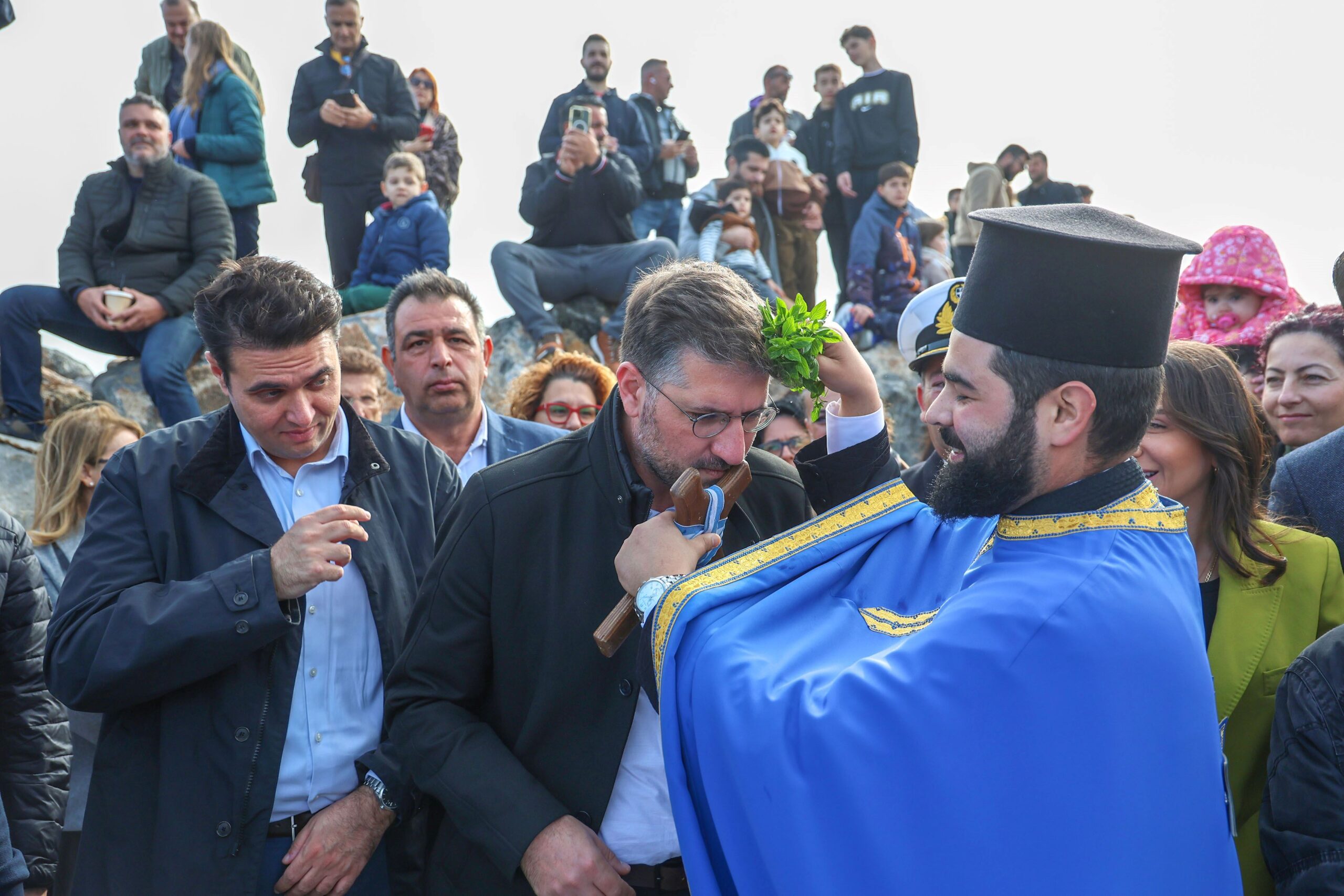 Κατά τη διάρκεια των τελετών, ο Δήμαρχος συνεχάρη τους κολυμβητές που βούτηξαν στα νερά για την ανάσυρση του Τιμίου Σταυρού και προσέφερε στους πρώτους που τον ανέσυραν έναν χρυσό σταυρό, ως συμβολικό δώρο, ευχόμενος υγεία, δύναμη και ευημερία.