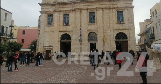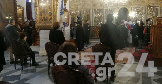 Με πιστούς μέσα στο ναό και την διακριτική παρουσία της αστυνομίας έξω από αυτόν τελέστηκε η λειτουργία για τον εορτασμό των Θεοφανείων στην Μητρόπολη των Χανίων.