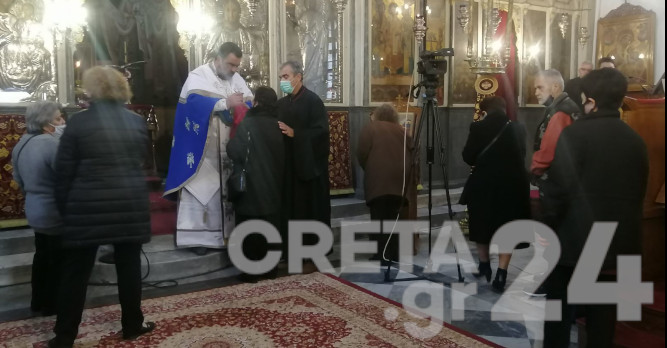 Όλα αυτά υπό το βλέμμα των αστυνομικών, οι οποίοι έκαναν αισθητή την παρουσία του έξω από τον ναό χωρίς ωστόσο να χρειαστεί να επέμβουν για την τήρηση των μέτρων.