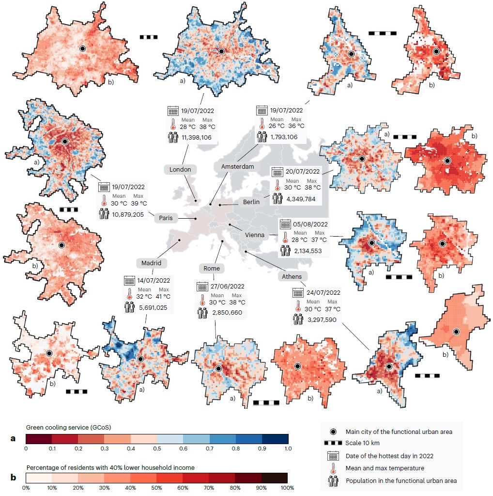 Δείτε το σχετικό άρθρο στο Nature Cities υπό τον τίτλο: “Unprivileged groups are less served by green cooling services in major European urban areas”
