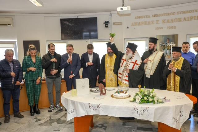 Τον Αγιασμό κατά την κοπή της πρωτοχρονιάτικης πίτας στην αίθουσα του Δημοτικού Συμβουλίου τέλεσαν ο Επίσκοπος Κνωσού κ.κ. Μεθόδιος, ο Αρχιερατικός Επίτροπός Μαλεβιζίου Γεώργιος Ματαλλιωτάκης και ο π. Ευάγγελος Παπουτσάκης ενώ το παρών έδωσαν ο Πρόεδρος του Δημοτικού Συμβουλίου Ελευθέριος Καλλέργης, Αντιδήμαρχοι, Πρόεδροι και Αντιπρόεδροι δημοτικών Οργανισμών και Επιχειρήσεων, Πρόεδροι Τοπικών Κοινοτήτων, Δημοτικοί Σύμβουλοι και εργαζόμενοι του Δήμου Μαλεβιζίου.
