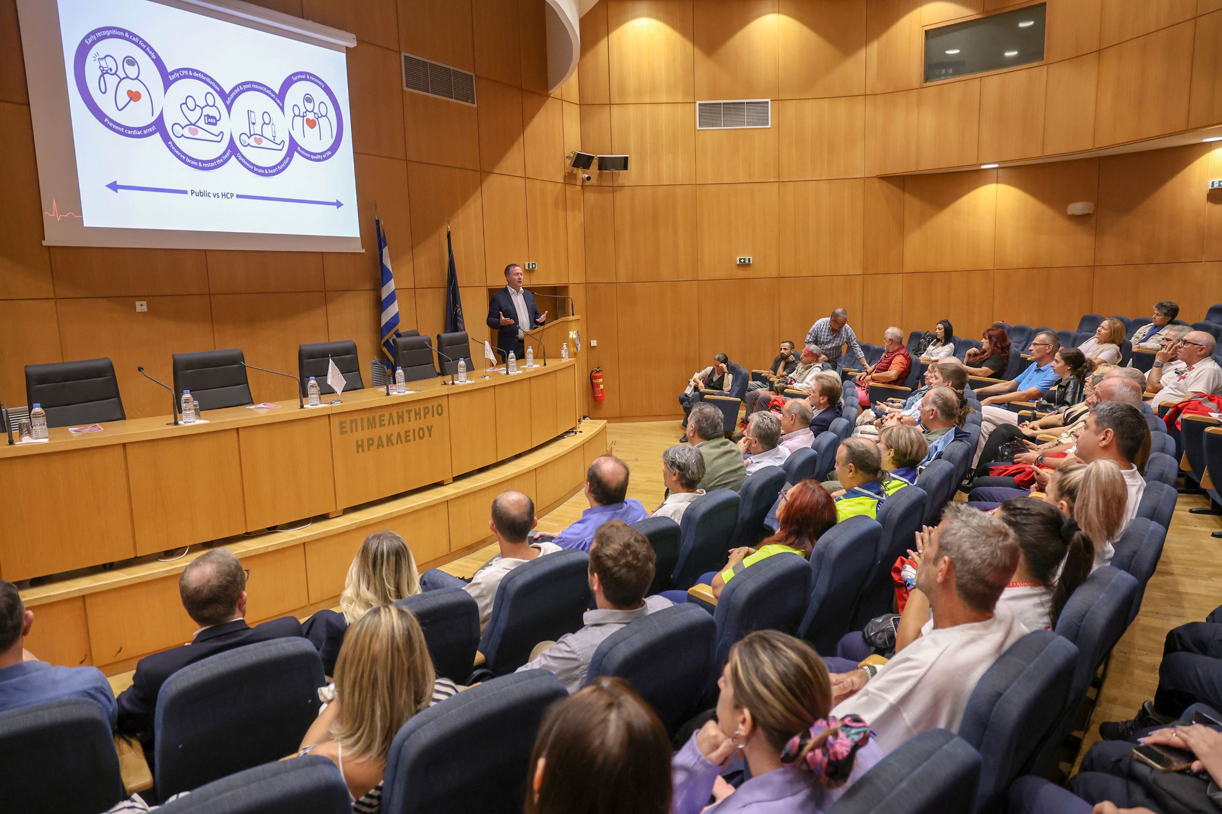 Σε μια ξεχωριστή εκδήλωση, η Περιφέρεια Κρήτης παρουσίασε την επιτυχημένη πορεία και τους μελλοντικούς στόχους του πρωτοποριακού προγράμματος «ΖΩΗ», το οποίο ενισχύει την ασφάλεια του νησιού απέναντι στην καρδιακή ανακοπή.