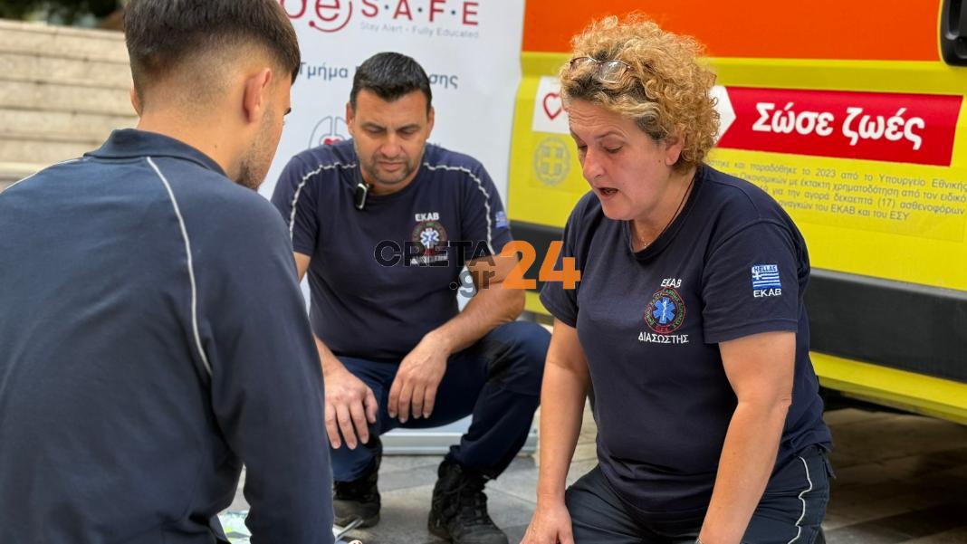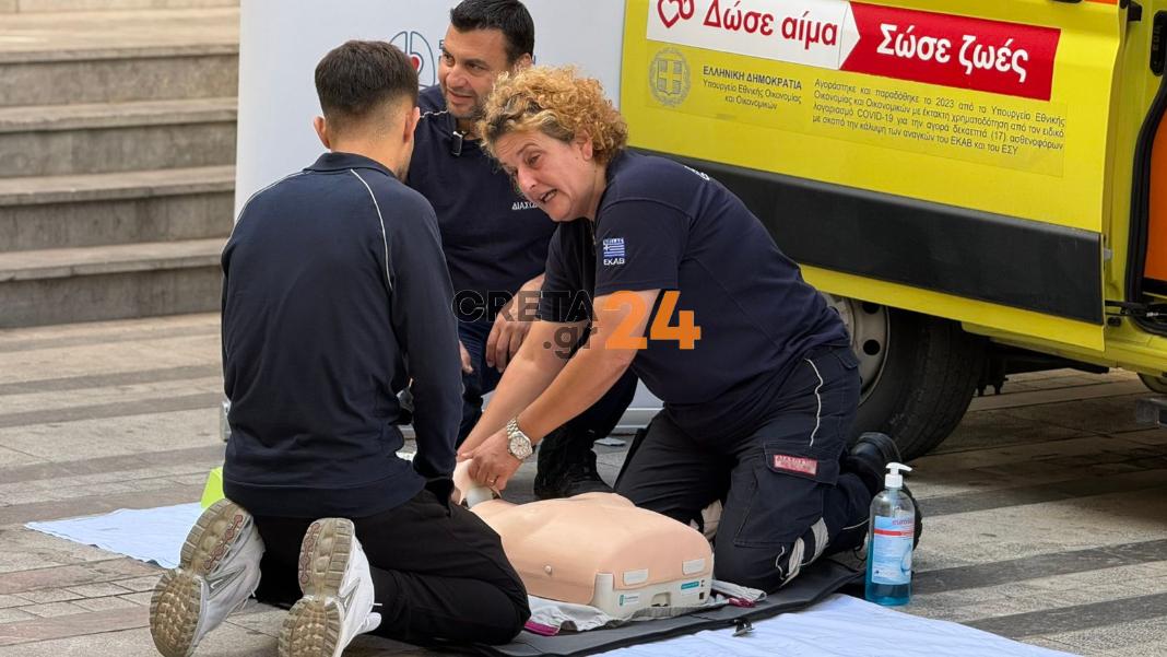 Ομάδα του ΕΚΑΒ βρέθηκε στο κέντρο του Ηρακλείου, στον πεζόδρομο της Δικαιοσύνης, όπου έκανε σεμινάρια πρώτων βοηθειών.