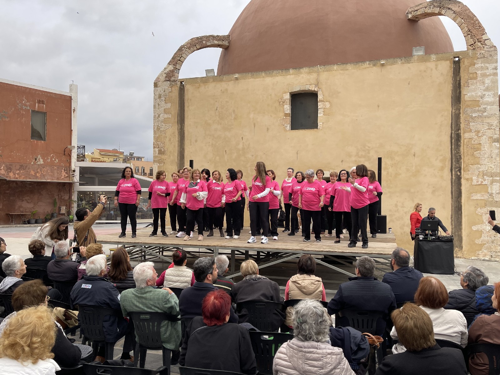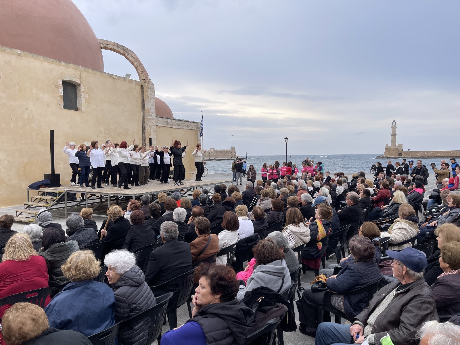 Με φόντο τον Φάρο και το Ενετικό Λιμάνι, ηλικιωμένοι και ηλικιωμένες, καθώς και νεότεροι γυμνάστηκαν, χόρεψαν, έκαναν Zumba και τραγούδησαν.