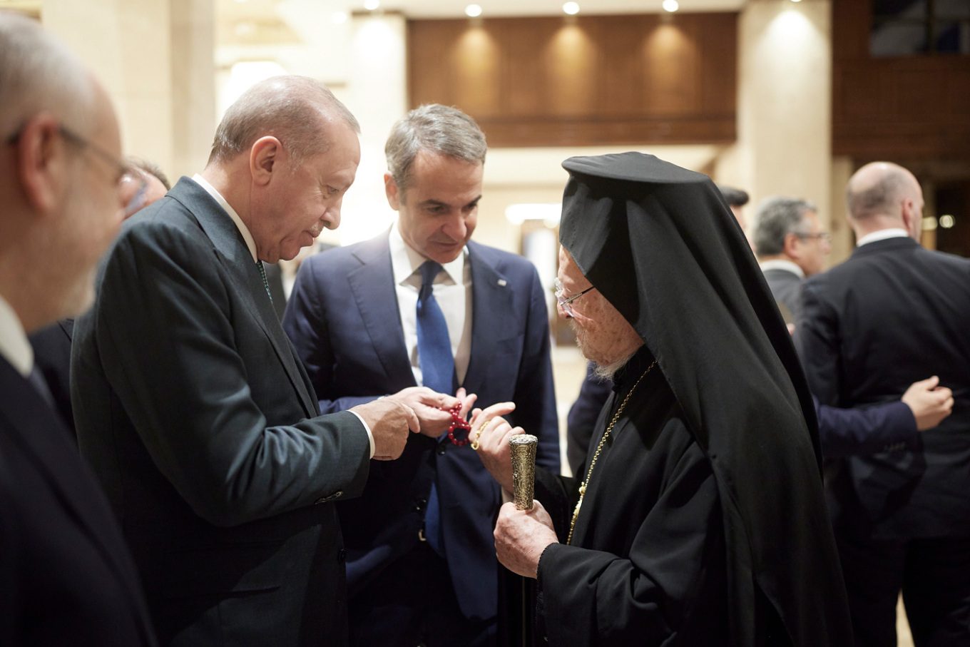 Ο κ. Ερντογάν συζήτησε για αρκετή ώρα με τον Έλληνα πρωθυπουργό, τον Οικουμενικό Πατριάρχη αλλά και τον Μητροπολίτη Γέροντα Χαλκηδόνος Εμμανουήλ. Σημειώνεται ότι ο Μητροπολίτης Γέρων Χαλκηδόνος Εμμανουήλ που συνόδευσε στην Άγκυρα τον Οικουμενικό Πατριάρχη Βαρθολομαίο, φορούσε κοστούμι, αφού στην Τουρκία οι ιερωμένοι μπορούν να φορούν τα ιερατικά άμφια μόνον εφόσον βρίσκονται σε χώρους λατρείας. Εξαιρείται του κανόνα ο Πατριάρχης.