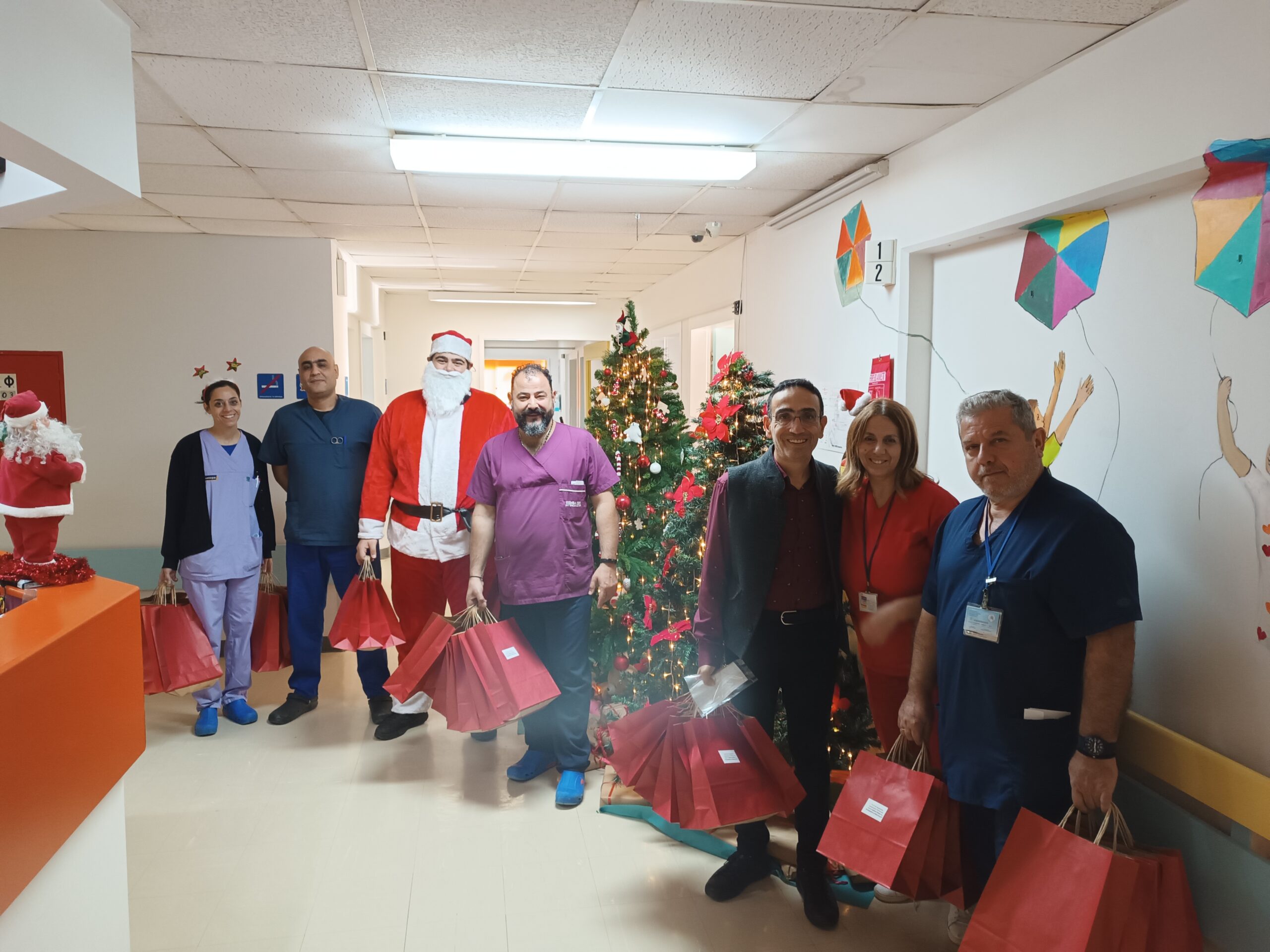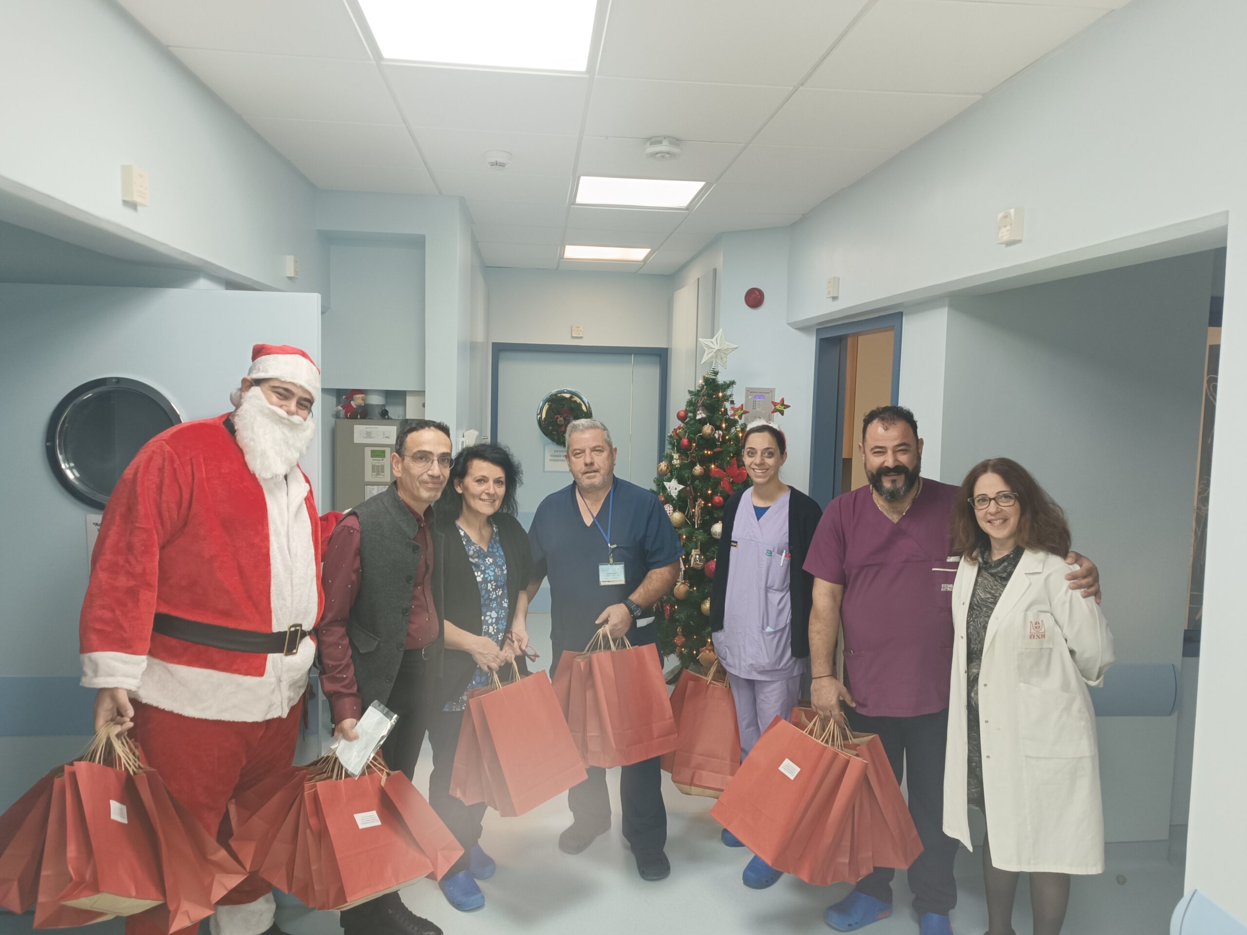 Σήμερα, εκπρόσωποι της διοίκησης του Σωματείου Εργαζομένων ΠαΓΝΗ, έχοντας στο πλευρό τους τον Άη Βασίλη, μοίρασαν δώρα στα παιδιά που νοσηλεύονται στις κλινικές Παιδιατρική, Παιδοχειρουργική, Παιδοαιματολογική, Παιδοψυχιατρική, ΩΡΛ και στη ΜΕΘ Παίδων. Με ζεστασιά και ανθρώπινη παρουσία, ευχήθηκαν ταχεία ανάρρωση στους μικρούς αγωνιστές και δήλωσαν τη στήριξή τους τόσο στις οικογένειές τους όσο και στο προσωπικό των κλινικών.