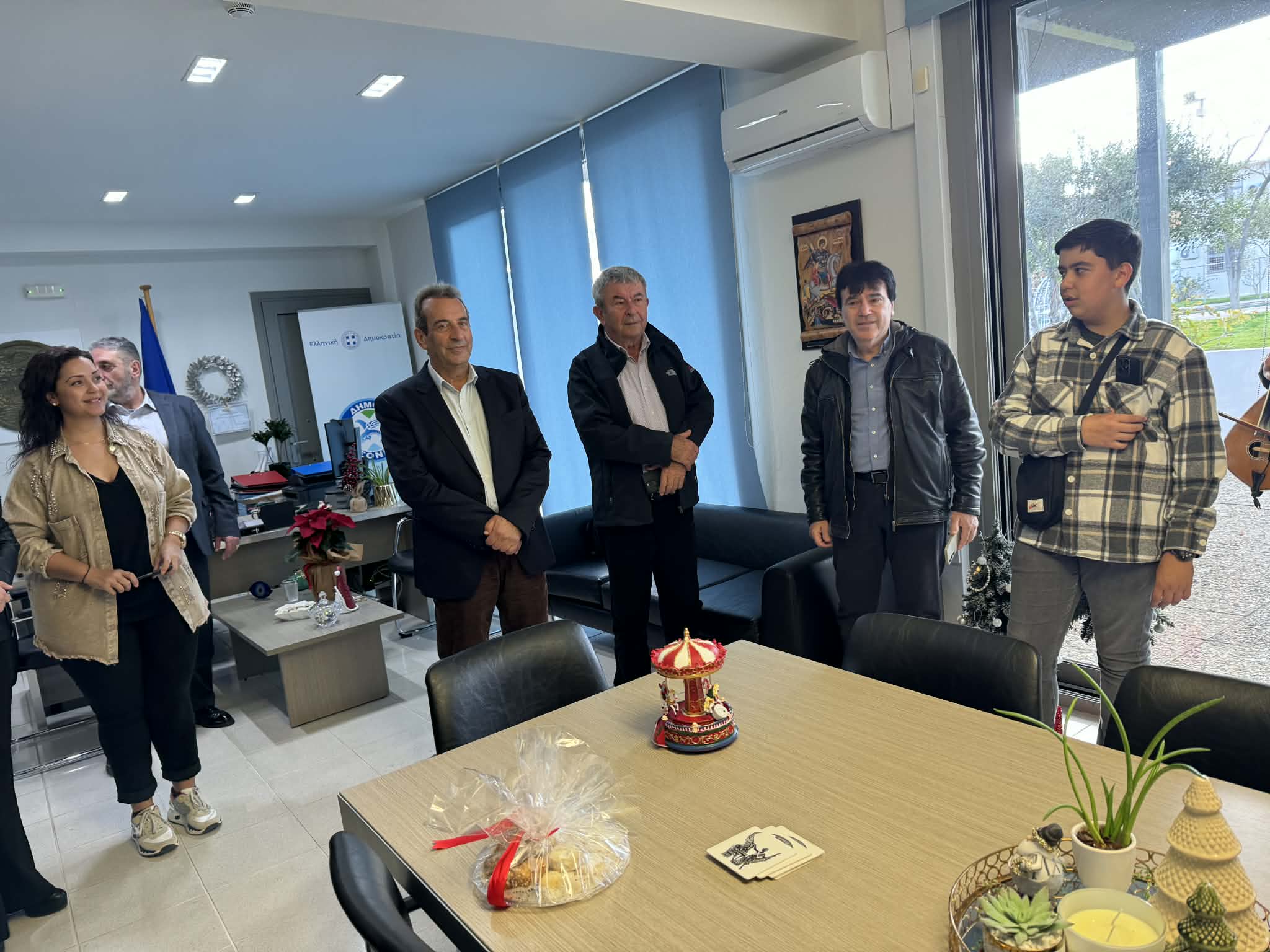 Μελωδίες και εορταστική ατμόσφαιρα πλημμύρισαν το Δημαρχείο Χερσονήσου στις Γούρνες, καθώς μαθήτριες και μαθητές του Μουσικού Σχολείου Ηρακλείου έψαλαν τα παραδοσιακά κάλαντα των Χριστουγέννων στον Δήμαρχο Χερσονήσου κ. Ζαχαρία Δοξαστάκη.