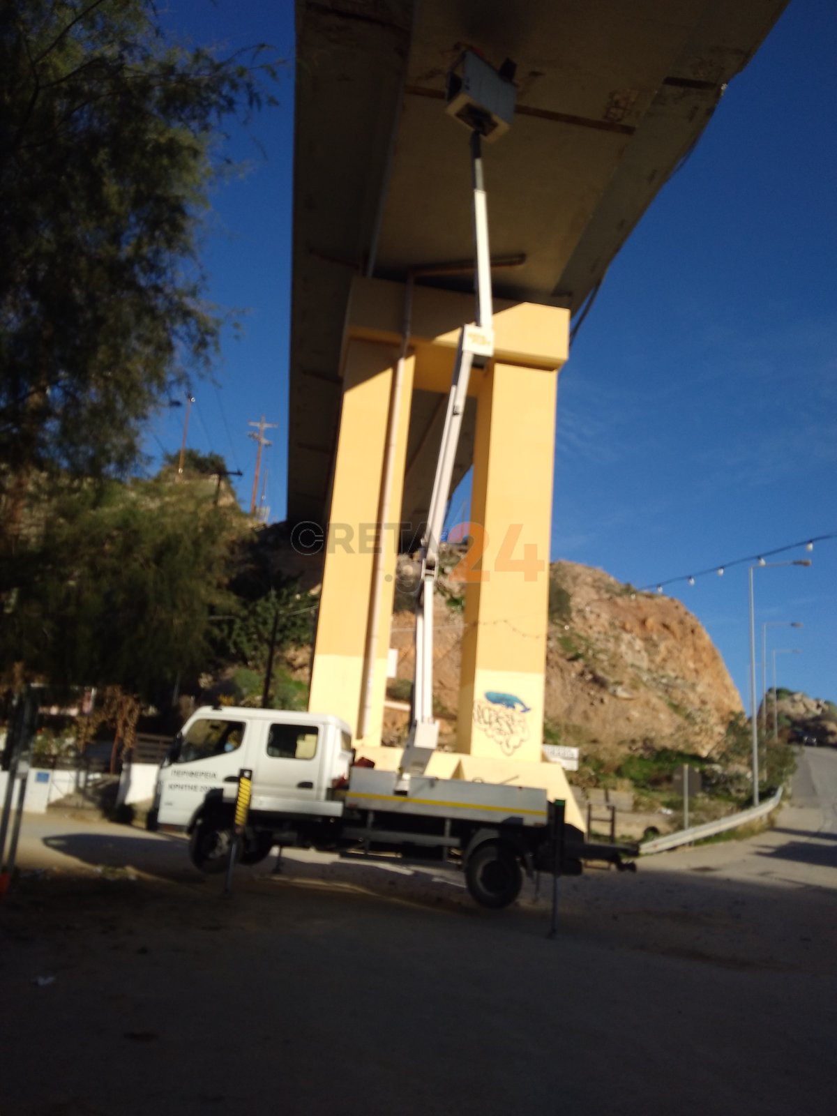 Συνεργεία της Περιφέρειας Κρήτης βρέθηκαν από την πρώτη στιγμή στο σημείο και αφαίρεσαν σαθρά τμήματα σκυροδέματος, που υπήρχε κίνδυνος να αποκολληθούν.