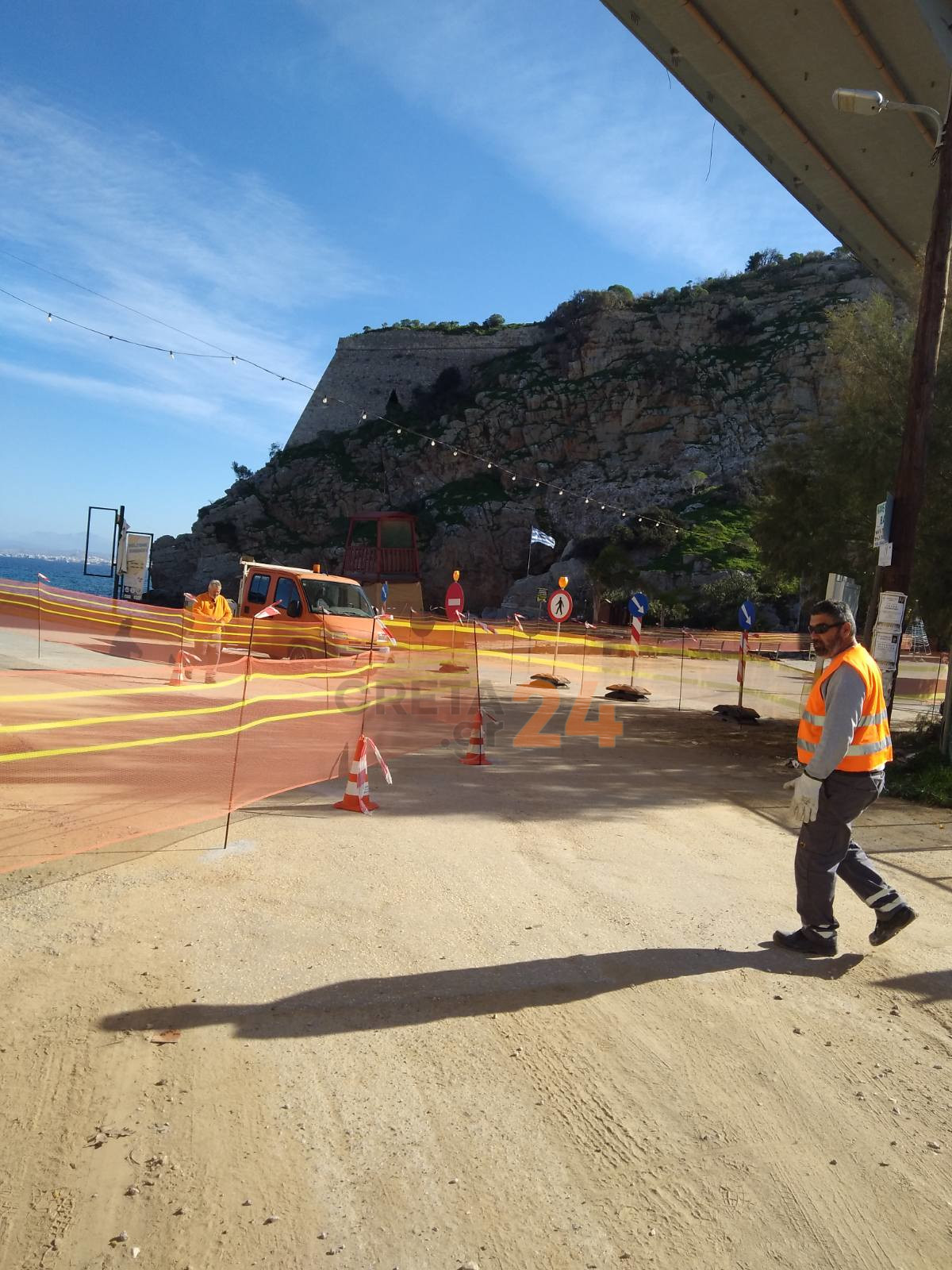 Τα συνεργεία υπό την καθοδήγηση μηχανικών προχωρούν σε παρεμβάσεις προσωρινού χαρακτήρα, αφού όπως εξήγησε ο κ. Σκουλάς η Περιφέρεια Κρήτης θα δρομολογήσει μια ολοκληρωτική παρέμβαση στη γέφυρα του Παλαιόκαστρου, η οποία ωστόσο, όπως είναι φυσικό, απαιτεί χρόνο.