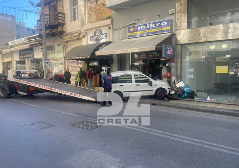 Το CRETA24 κατέγραψε από την πρώτη στιγμή το περιστατικό και ότι δεν πρόκειται απλά για… στραβοτιμονιά του οδηγού, μιας και προηγήθηκε διαπληκτισμός με την ιδιοκτήτρια κάτι που αποδείκνυε την εσκεμμένη του εισβολή με το όχημα στο μαγαζί λίγα λεπτά μετά