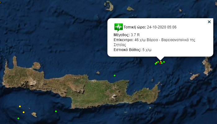 ΚΡΗΤΗΚΟΙΝΩΝΙΑ Νέος σεισμός στην Κρήτη Σάββατο 24 Οκτ 2020 | 09:48 FacebookTwitterViberWhatsAppEmailCopy URL Πρέπει να διαβάσετε Νέα σεισμική δόνηση σημειώθηκε, τα ξημερώματα, στην Κρήτη. Ο σεισμός έντασης 3,7 βαθμών της κλίμακας Ρίχτερ σημειώθηκε 46χλμ βόρεια – βορειοανατολικά της Σητείας. Το εστιακό βάθος του σεισμού υπολογίζεται στα 5 χλμ. ΕτικέτεςΔΗΜΟΦΙΛΗ Σχετικά άρθρα Έρχονται χιόνια με… 20άρια και αφρικανική σκόνη – Στο επίκεντρο η Κρήτη Παρασκευή 23 Ιαν 2026 | 22:15 Έφυγε από τη ζωή ο Ρεθεμνιώτης ακαδημαϊκός Αντώνιος Εμμ. Αλεξανδράκης Παρασκευή 23 Ιαν 2026 | 21:41 Αναβαθμίζονται πέντε λιμενικές υποδομές της Κρήτης – Ποιες παρεμβάσεις θα γίνουν Παρασκευή 23 Ιαν 2026 | 20:22 Κρητική βραδιά χωρίς αλκοόλ στο Ηράκλειο Παρασκευή 23 Ιαν 2026 | 20:00 Άλλα Πρόσφατα Πάτρα: Αναστάτωση στον προαστιακό με σεξουαλική παρενόχληση σε βάρος ανήλικης Παρασκευή 23 Ιαν 2026 | 22:53 Άγριο ξύλο μεταξύ οδηγών για την προτεραιότητα Παρασκευή 23 Ιαν 2026 | 22:48 Ο Τραμπ εξετάζει το ενδεχόμενο πλήρη ναυτικού αποκλεισμού της Κούβας στις εισαγωγές πετρελαίου Παρασκευή 23 Ιαν 2026 | 22:40 Κρίσεις Αντιστρατήγων της Ελληνικής Αστυνομίας: Ποιοι αποστρατεύθηκαν, ποιοι συνεχίζουν Παρασκευή 23 Ιαν 2026 | 22:33 Αγόρασαν σπίτι και βρήκαν κρυφή πόρτα του 1974: «Δεν την είχε ανοίξει ποτέ κανείς» Παρασκευή 23 Ιαν 2026 | 22:24