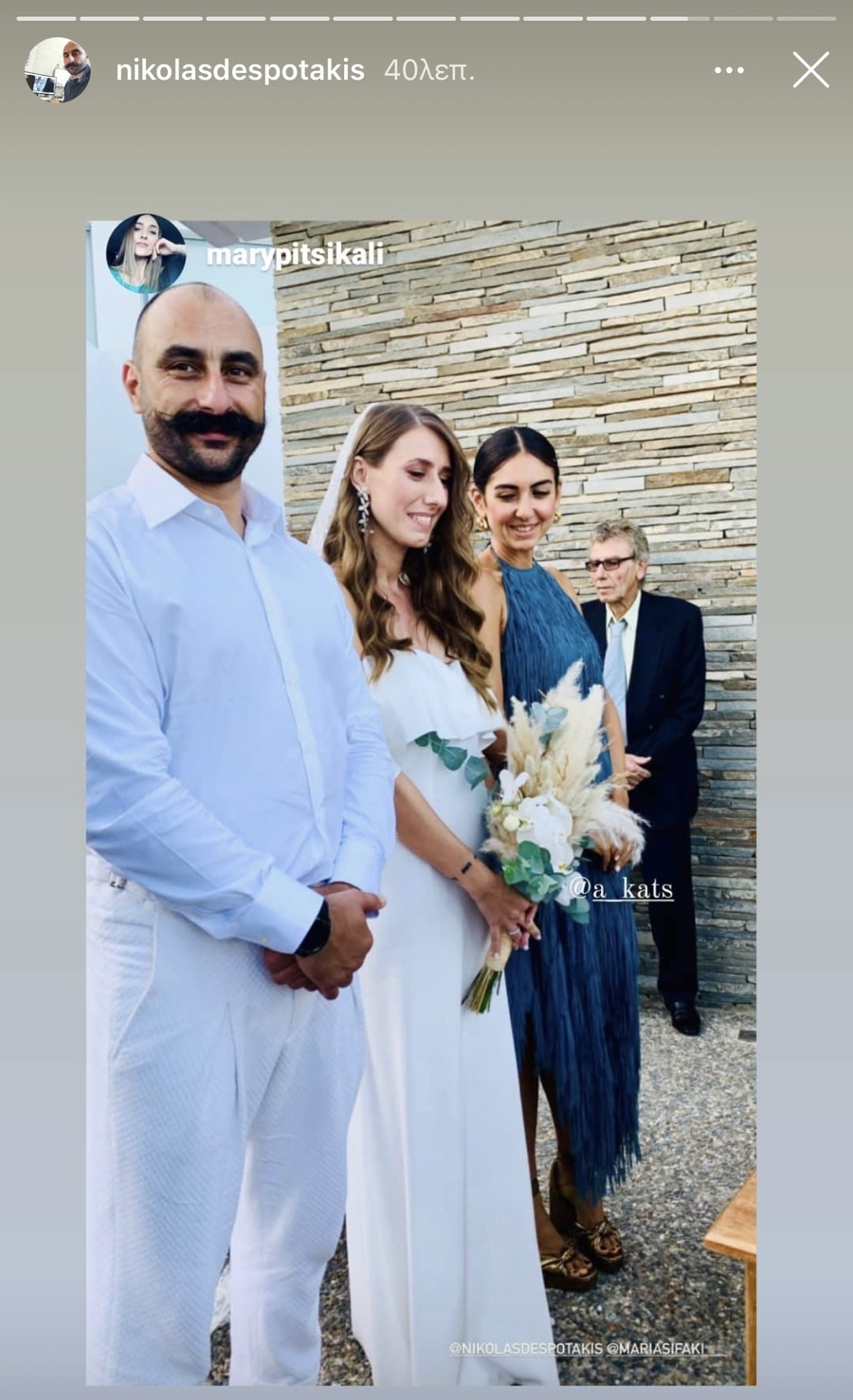 Κουμπάροι του ζευγαριού ο Γιώργος Γιαννουλάκης και η Άννα Κατσανέβα.