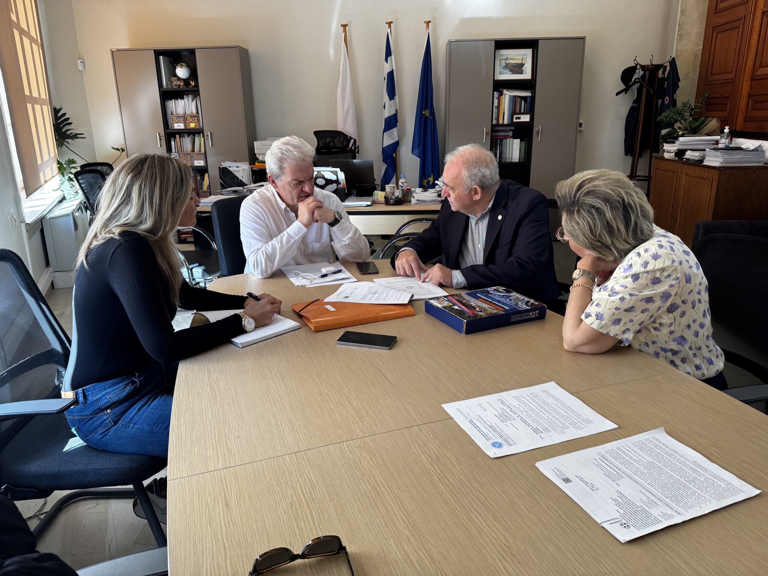 «Συνάντηση εργασίας με τον Πρόεδρο του ΟΑΣΠ, καθηγητή Ευθύμη Λέκκα, πραγματοποίησε το πρωί της Παρασκευής 10/10 ο Δήμαρχος Ηρακλείου Αλέξης Καλοκαιρινός, μαζί με την Γενική Γραμματέα του Δήμου Μαρία Σκραφνάκη.