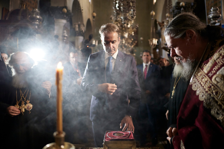 Ο Πρωθυπουργός Κυριάκος Μητσοτάκης παρέστη στην τελετή ενθρόνισης του νέου Αρχιεπισκόπου Σινά, Φαράν και Ραϊθώ και Ηγουμένου της Ιεράς Μονής Αγίας Αικατερίνης Όρους Σινά, κ. Συμεών, η οποία πραγματοποιήθηκε παρουσία του Πατριάρχη Ιεροσολύμων κ.κ. Θεόφιλου και εκπροσώπων του Οικουμενικού Πατριαρχείου, του Πατριαρχείου Αλεξανδρείας, των Εκκλησιών Ελλάδας και Κύπρου.
