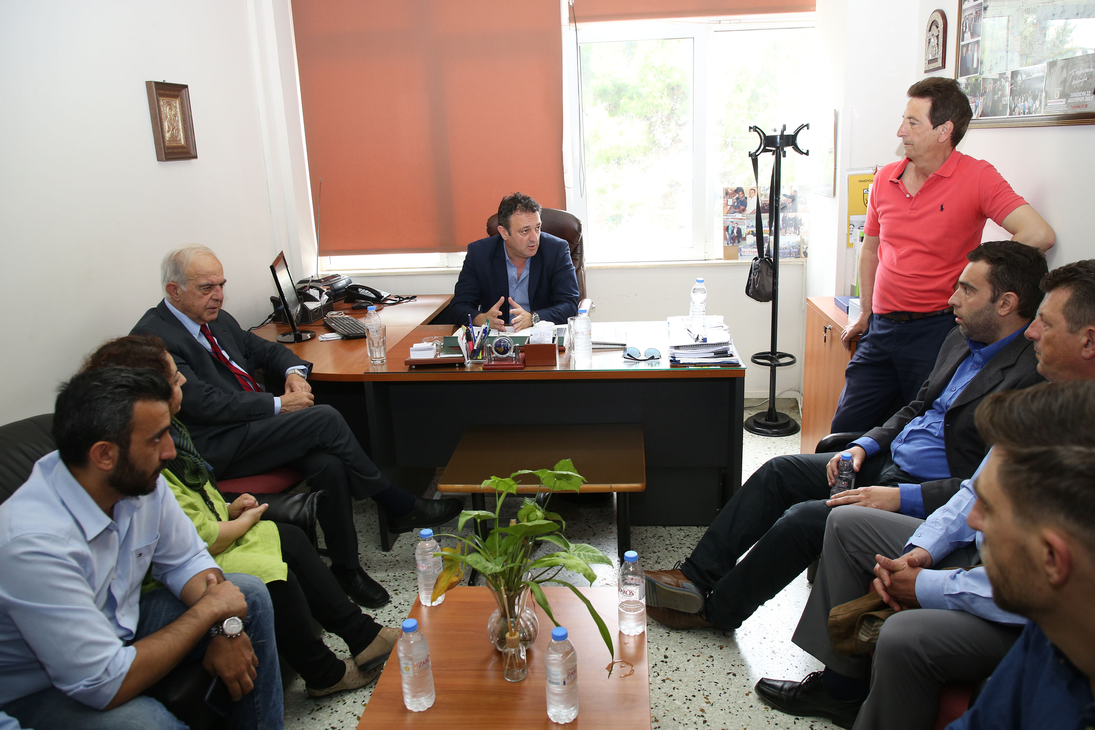 Ο Δήμαρχος είχε την ευκαιρία να συνομιλήσει σε πολύ καλό κλίμα με τον πρόεδρο Στέλιο Βοργιά και μέλη του Δ.Σ., για διάφορα θέματα, μεταξύ των οποίων οι εργασιακές συνθήκες στον Δήμο Ηρακλείου.