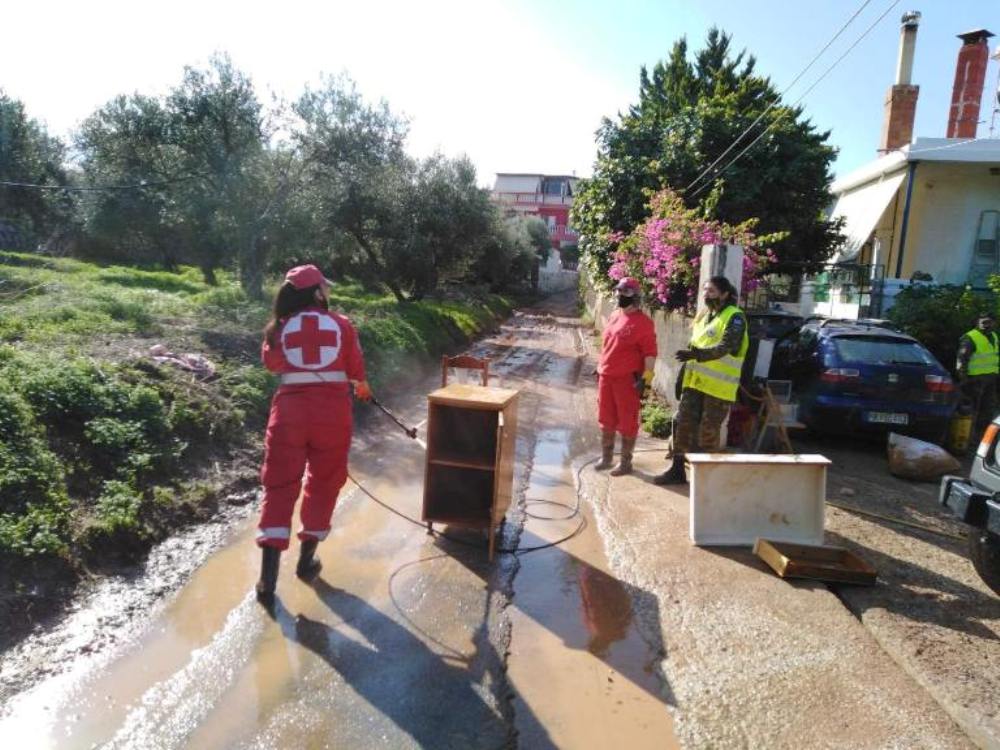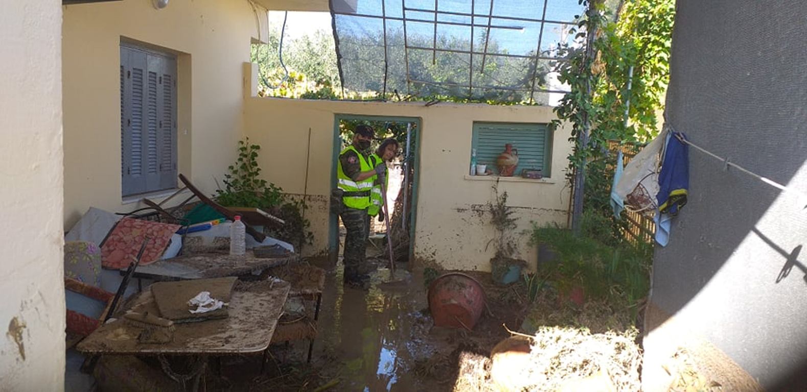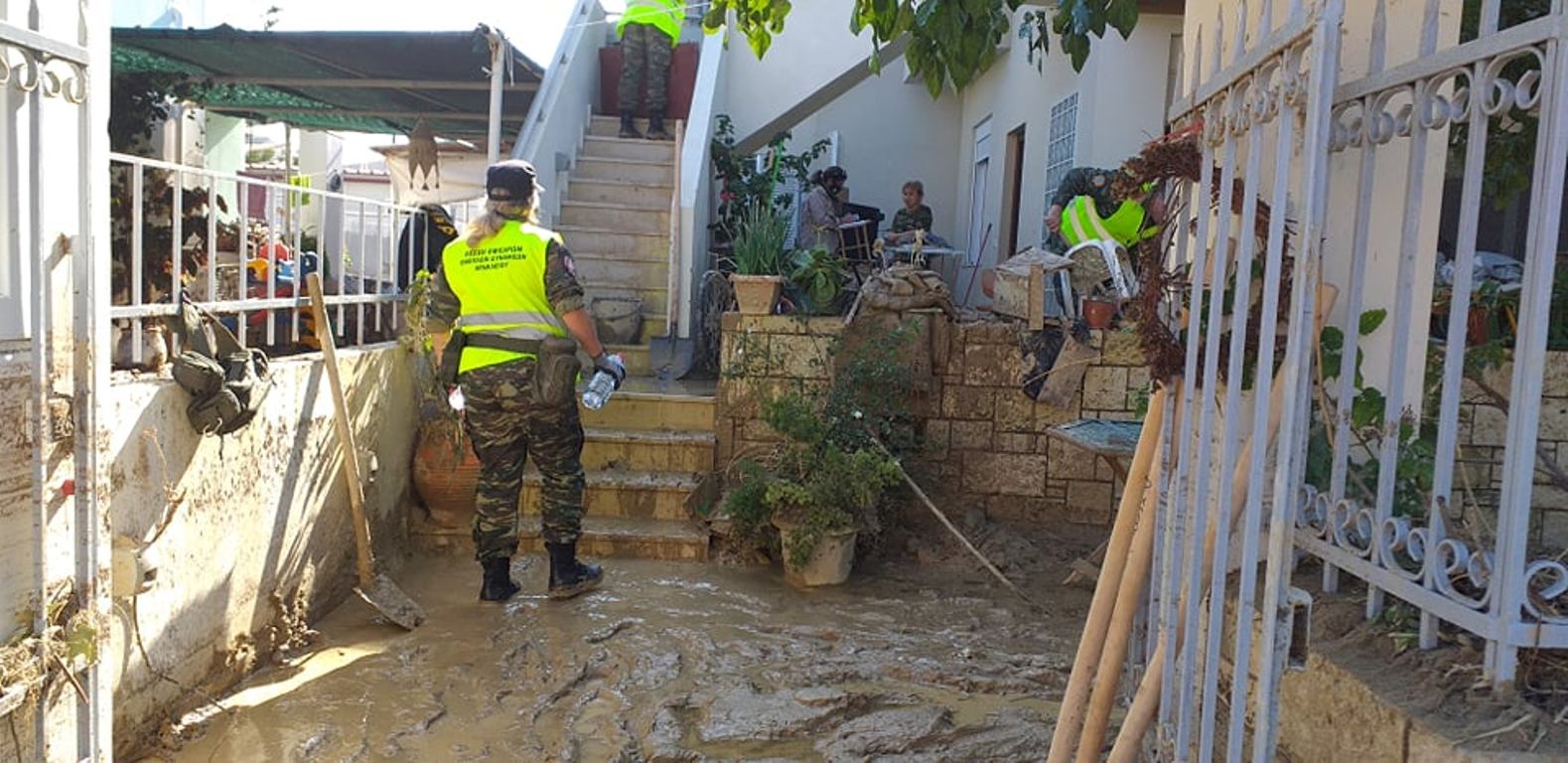 Τα μέλη της ΛΕΦΕΔ Ηρακλείου επιχείρησαν μαζί με εθελοντές του Ελληνικού Ερυθρού Σταυρού, με τις οδηγίες των στελεχών του Δήμου Χερσονήσου που προσπαθούν να συντονίσουν την μεγάλη προσπάθεια για αποκατάσταση των καταστροφών.