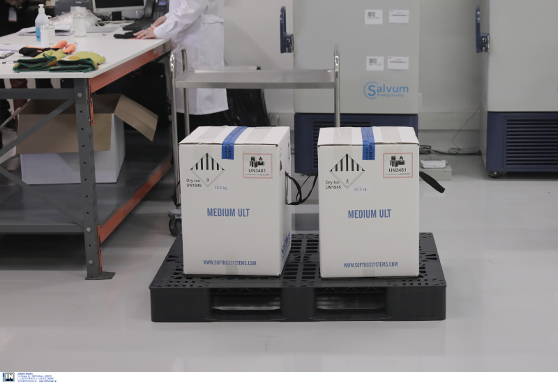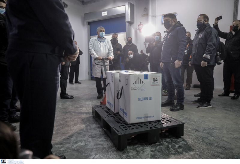 Σε μεγάλο αποθηκευτικό χώρο στο Κρυονέρι Αττικής, συνοδεία ισχυρών αστυνομικών δυνάμεων, έφτασε λίγο μετά τις 7 το πρωί το φορτίο με τις πρώτες 9.750 δόσεις του εμβολίου της Pfizer κατά του κορωνοϊού.