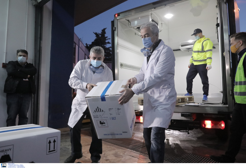 Θα ακολουθήσει η διανομή σε άλλες τέσσερις μεγάλες αποθήκες στην υπόλοιπη χώρα και στη συνέχεια στα κέντρα, όπου θα γίνουν αύριο οι πρώτοι εμβολιασμοί.