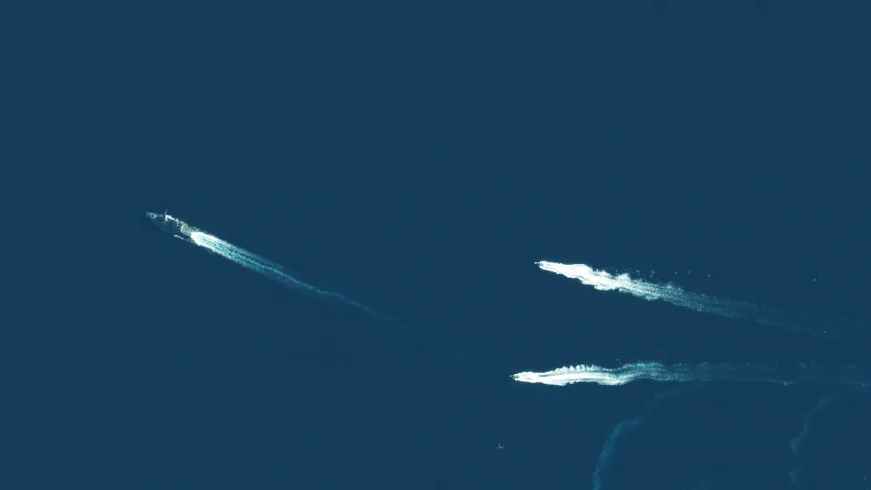Στο θαλάσσιο χώρο, η Ελλάδα αποκτά πλήρη εικόνα σε όλο τον χώρο της Ανατολικής Μεσογείου. Μέσω δορυφορικών δεδομένων, καθίσταται δυνατός ο εντοπισμός πλοιαρίων, σκαφών και αντικειμένων ενδιαφέροντος, ενισχύοντας την επιτήρηση των συνόρων, τη διαχείριση μεταναστευτικών ροών, την ασφάλεια της ναυσιπλοΐας και την προστασία κρίσιμων υποδομών. Τα ραντάρ εντοπίζουν πλοία ανεξαρτήτως καιρού ή ώρας, ενώ τα οπτικά και θερμικά δεδομένα, συμβάλλουν στην παρακολούθηση ρύπανσης, θαλάσσιων καυσώνων και προστατευόμενων θαλάσσιων περιοχών,