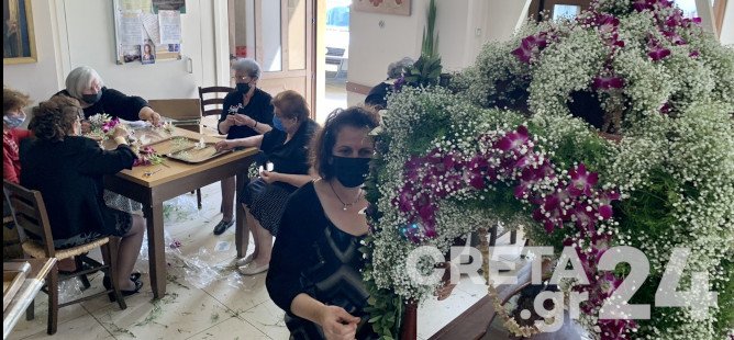 Η Ορθοδοξία γιορτάζει για δεύτερη χρονιά το Πάσχα στη σκιά της πανδημίας του κορωνοϊού και έτσι ο στολισμός των επιταφίων στο Ηράκλειο, έγινε από λίγους πιστούς, με μάσκες και αποστάσεις.