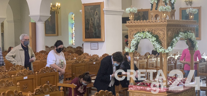 Το Creta24, βρέθηκε σε εκκλησίες του Ηρακλείου όπου αρκετοί πιστοί βρέθηκαν φορώντας μάσκες και τηρώντας όλα τα μέτρα για να προσκυνήσουν τον επιτάφιο.