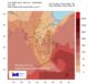 Στο χάρτη, από το μοντέλο DUST/METEO του Εθνικού Αστεροσκοπείου Αθηνών, που δημοσίευσε ο κ. Λαγουβάρδος, παρουσιάζεται η προβλεπόμενη συγκέντρωση της σκόνης τις βραδινές ώρες της Παρασκευής 17/04. «Μέσα στο Αιγαίο αλλά και στην Κρήτη, οι ισχυροί βόρειοι άνεμοι περιορίζουν σημαντικά τις συγκεντρώσεις σκόνης (περιοχή εντός της κίτρινης έλλειψης) ενώ υψηλές συγκεντρώσεις σκόνης προβλέπονται στα νοτιοανατολικά, αλλά ευτυχώς κυρίως σε θαλάσσιες περιοχές. Από το Σάββατο 18/04 η σκόνη απομακρύνεται σχεδόν εντελώς από τη χώρα μας», αναφέρει ο ίδιος.