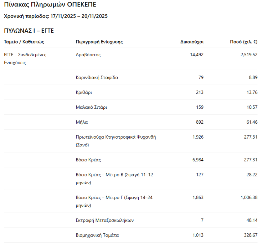 Στην πληρωμή και νέων συμπληρωματικών συνδεδεμένων ενισχύσεων (αιτήσεις του 2024) σε 82.870 αγρότες προχώρησε ο ΟΠΕΚΕΠΕ, καταβάλλοντας συνολικά 46 εκατομμύρια ευρώ στους τραπεζικούς λογαριασμούς των δικαιούχων.