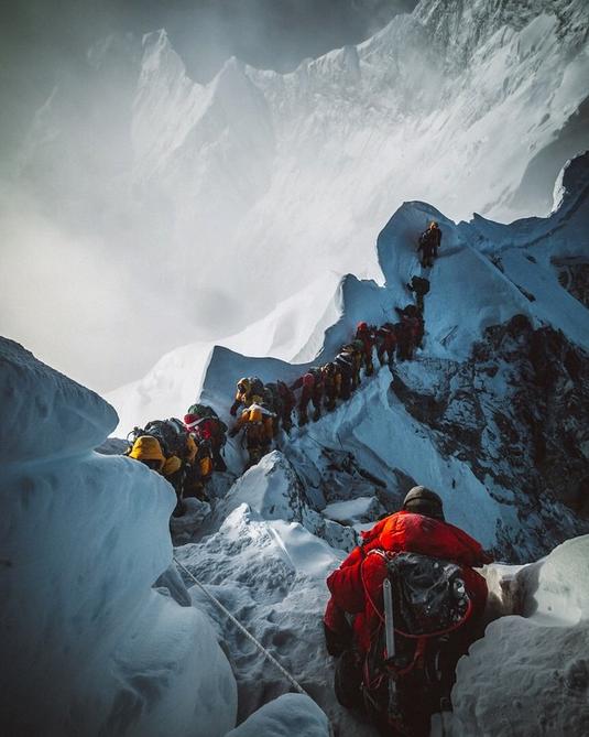 Πριν από λίγες ημέρες, μια άλλη φωτογραφία από το Έβερεστ που είχε γίνει viral, έδειχνε περίπου 200 με 300 ορειβάτες να περιμένουν υπομονετικά σε μια σειρά, εξαντλημένοι από την κούραση και σε μια πολύ μικρή απόσταση από την κατάκτηση της ψηλότερης κορυφής του κόσμου. Όμως το όνειρο αυτό, αποδείχτηκε μοιραίο για αρκετούς, καθώς μέχρι στιγμής έχουν χάσει τη ζωή τους 11 άτομα, τις τελευταίες ημέρες.