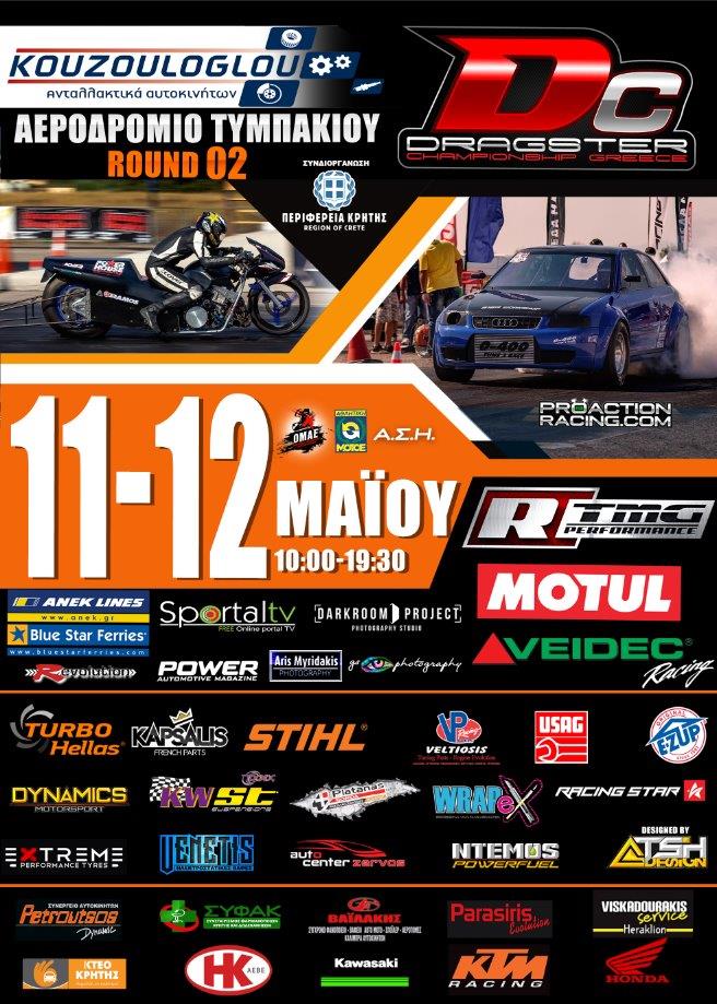 Το σαββατοκύριακο 11 και 12 Μαΐου το αεροδρόμιο Τυμπακίου, το πιο νότιο αεροδρόμιο της χώρας ξανανοίγει τις πύλες του για να υποδεχτεί τον 2ο γύρο του φετινού πανελληνίου πρωταθλήματος Dragster.