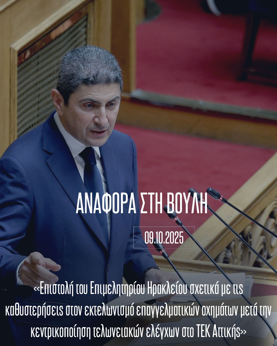 Η Αναφορά βασίζεται στην υπ’ αριθμ. πρωτ. 3476/07.10.2025 επιστολή του Προέδρου του Επιμελητηρίου Ηρακλείου, με την οποία εκφράζεται «η έντονη ανησυχία για τις καθυστερήσεις που παρατηρούνται το τελευταίο διάστημα στον εκτελωνισμό επαγγελματικών οχημάτων». Όπως σημειώνεται, «το πρόβλημα έχει ενταθεί μετά την κεντρικοποίηση των τελωνειακών διαδικασιών στο Τελωνειακό Ελεγκτικό Κέντρο (ΤΕΚ) Αττικής, στο πλαίσιο της μεταρρύθμισης που προωθεί η ΑΑΔΕ για τη ψηφιακή αναβάθμιση και ενοποίηση των τελωνειακών ελέγχων».