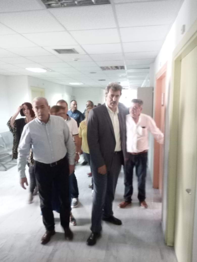 Ο κ. Πολάκης συνοδευόμενος από τη διοικήτρια της 7ης ΥΠΕ Κρήτης και τον βουλευτή Ηρακλείου Σωκράτη Βαρδάκη έφτασε στο Βενιζέλειο, όπου είχε συνάντηση με τη διοίκηση του νοσοκομείου.