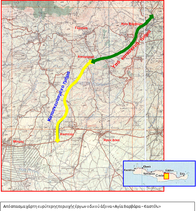 Το Σάββατο 18 Μαΐου, στις 12 το μεσημέρι, θα δοθεί σε κυκλοφορία το νέο οδικό τμήμα από την Αγία Βαρβάρα προς Μοίρες και Μεσαρά του κάθετου άξονα Ηράκλειο – Μοίρες, μήκους περίπου 16 χλμ. παρουσία του Υπουργού Υποδομών και Μεταφορών Χρήστου Σπίρτζη.