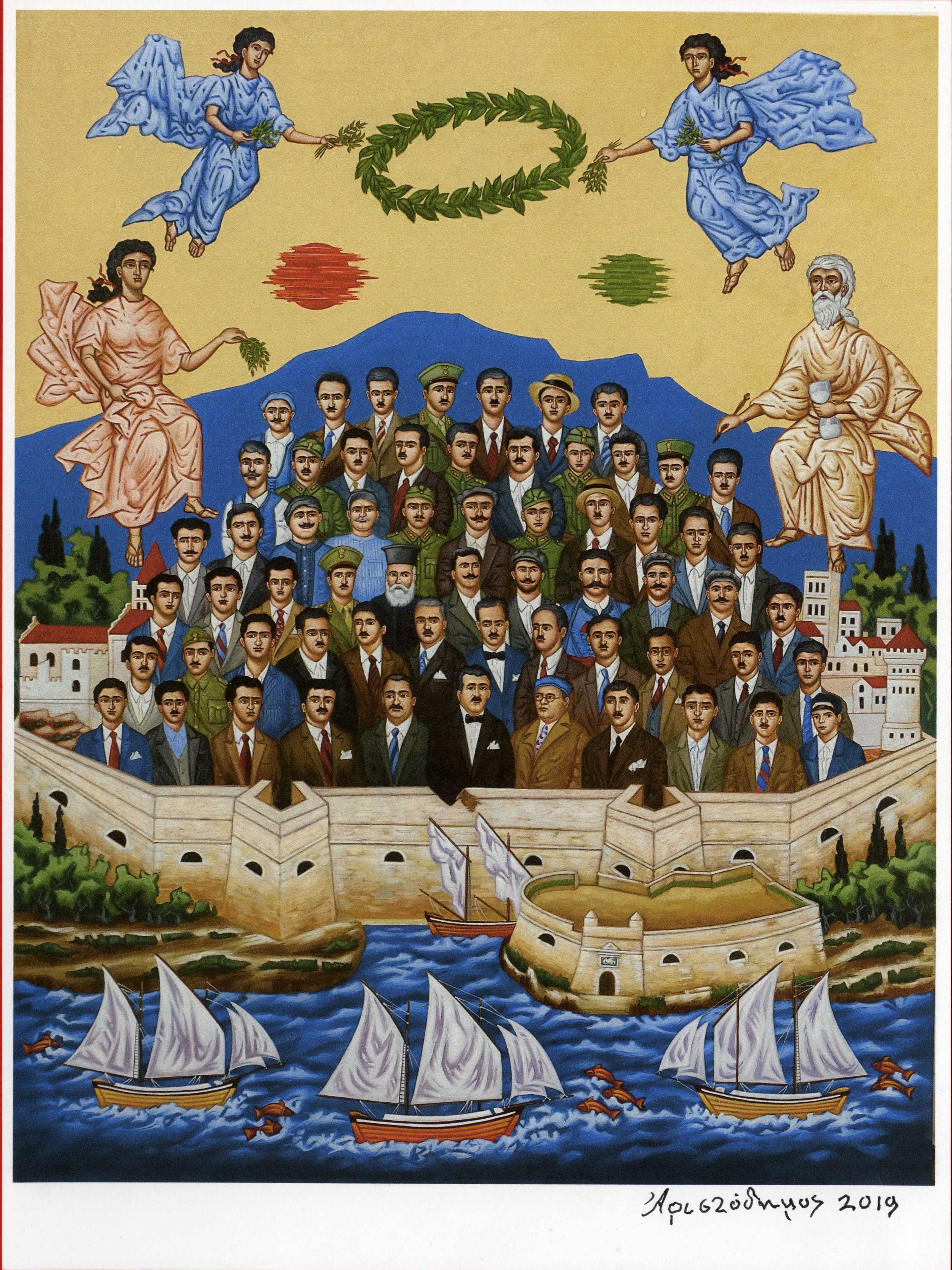 Τριανταπέντε ολόκληρα χρόνια αφότου έγινε η πρώτη συζήτηση ανάμεσα στο γνωστό ζωγράφο Αριστόδημο και τον αείμνηστο Μανόλη Καρέλλη ολοκληρώθηκε ένα σημαντικό έργο τέχνης για το Ηράκλειο: Ο πίνακας ο οποίος απεικονίζει τους 62 Μάρτυρες που εκτελέσθηκαν από τα Γερμανικά στρατεύματα κατοχής το 1942.