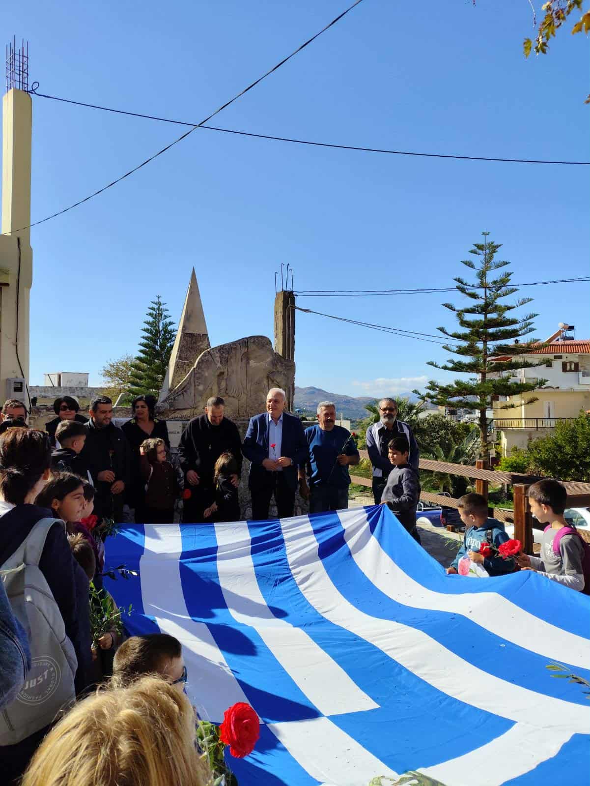 Ο Δήμαρχος Βιάννου απευθυνόμενος προς τους μικρούς μαθητές μίλησε με λόγια συγκινητικά για την σημερινή Επέτειο και τα πολλαπλά μηνύματα που εκπέμπονται κάθε τέτοια μέρα, τονίζοντας μεταξύ άλλων, πως οι Βιαννίτες, όπως και όλοι οι Έλληνες, οφείλουμε να τιμούμε τους εξεγερθέντες του Πολυτεχνείου, που με τον αγώνα και τη θυσία τους αποτελούν για ολους μας σύμβολα αυταπάρνησης και θάρρους.