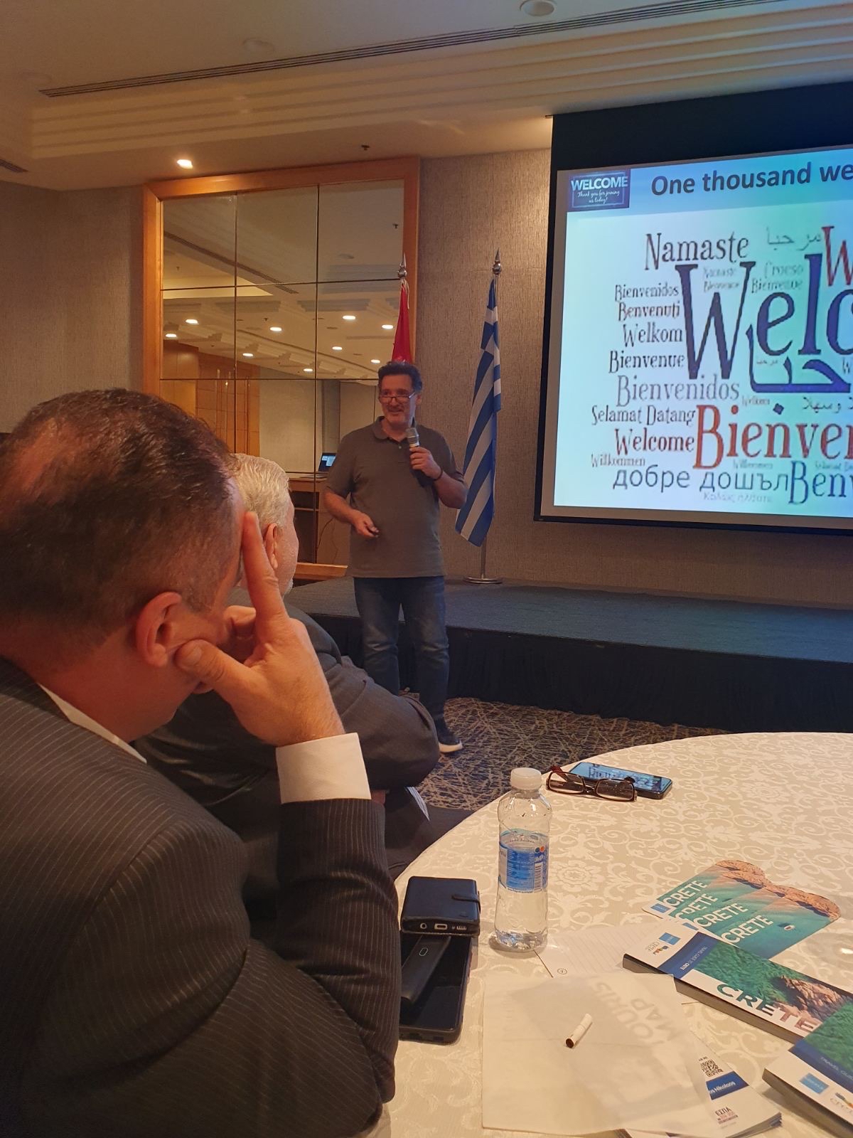 Επίσης, πραγματοποιήθηκε παρουσίαση του τουριστικού προϊόντος της Κρήτης από τον Αντιπεριφερειάρχη Τουρισμού και Ηλεκτρονικής Διακυβέρνησης της Περιφέρειας Κρήτης κ. Κυριάκο Κώτσογλου, ο οποίος με αφορμή την συμμετοχή της Περιφέρειας στις ως άνω δράσεις δήλωσε: «Στην χώρα του Αραβικού κόσμου που τη διακρίνει ο Ευρωπαϊκός προσανατολισμός και που το πιο σημαντικό της τοπωνύμιό της – Πέτρα – έχει Ελληνικό όνομα, εκεί όπου ο πλησιέστερος Ελληνικός προορισμός είναι η Κρήτη, στην Ιορδανία και στο Αμμάν, κάναμε ένα ακόμα βήμα για να φέρουμε μια νέα αγορά πιο κοντά. Δεν είναι δύσκολο, η Βασίλισσα της Ιορδανίας που μας κάνει κάθε χρόνο την τιμή και έρχεται στην Κρήτη γνωρίζει καλά, δουλειά θέλει για να έρθουμε στις κορυφαίες θέσεις προτίμησης των Ιορδανών, όπως γίνεται και με τους άλλους λαούς της Μεσογείου. Κρήτη, παντού!!».