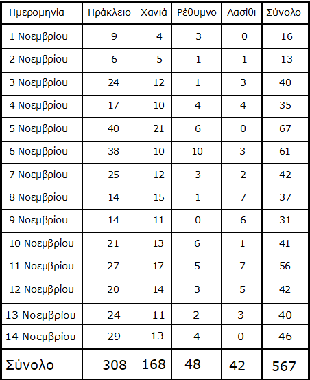 Από την 1η Νοεμβρίου στο Ρέθυμνο έχουν επιβεβαιωθεί 48 κρούσματα, ενώ στο Λασίθι 42.
