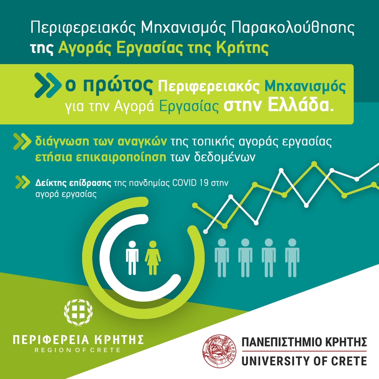 Η Περιφέρεια Κρήτης πρώτη σε επίπεδο χώρας διαθέτει στοιχεία για τις επιπτώσεις της πανδημίας COVID-19 στην τοπική αγορά εργασίας, μέσα από τον Περιφερειακό Μηχανισμό Παρακολούθησης της Αγοράς Εργασίας που υλοποιεί σε συνεργασία με τη Μονάδα Ερευνών Αγοράς και Επιχειρηματικότητας του Πανεπιστημίου Κρήτης.