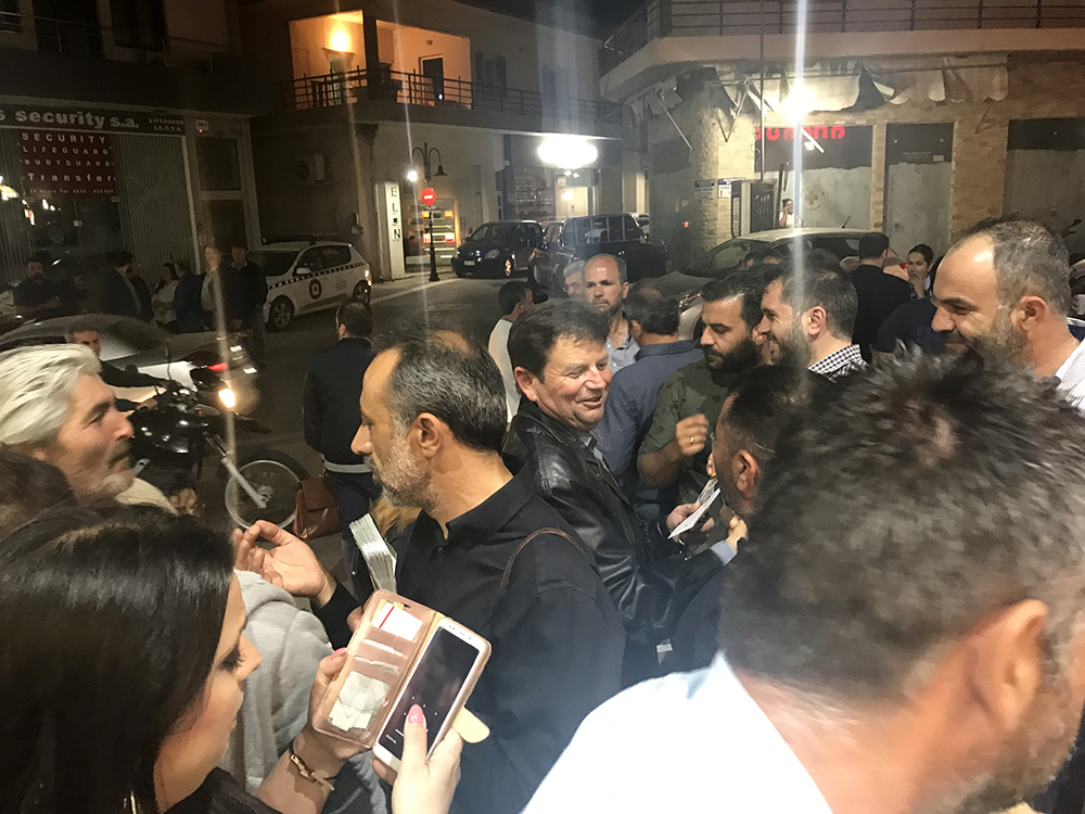Πολλές εκατοντάδες ήταν οι φίλοι του Κώστα Μαμουλάκη αλλά και οι απλοί πολίτες που πέρασαν το βράδυ της Τρίτης από το εκλογική κέντρο της δημοτικής παράταξης «Νέοι Δρόμοι» για να του ευχηθούν χρόνια πολλά.