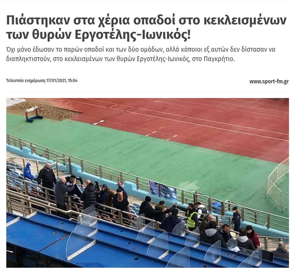 “Επεισόδια σε παιχνίδι κεκλεισμένων των θυρών”.