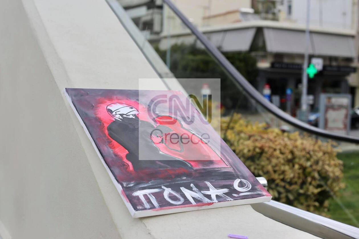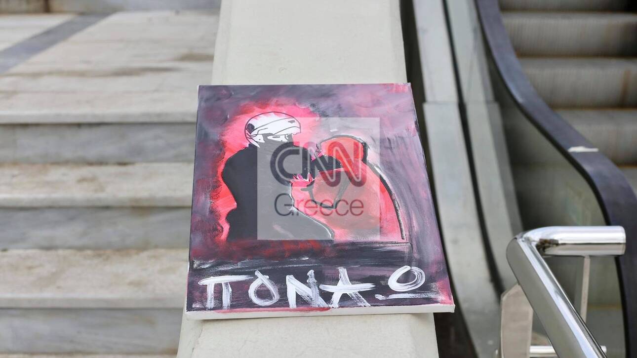 Ένας πίνακας, που απεικονίζει έναν αστυνομικό να επιτίθεται σε πολίτη, αφέθηκε στην πλατεία της Νέας Σμύρνης, δύο μόλις ημέρες μετά από το περιστατικό αστυνομικής βίας που σημειώθηκε στην περιοχή.
