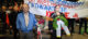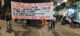Οι συμμετέχοντες κρατούσαν πανό, σημαίες και στεφάνια.