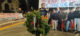 Οι συμμετέχοντες κρατούσαν πανό, σημαίες και στεφάνια.